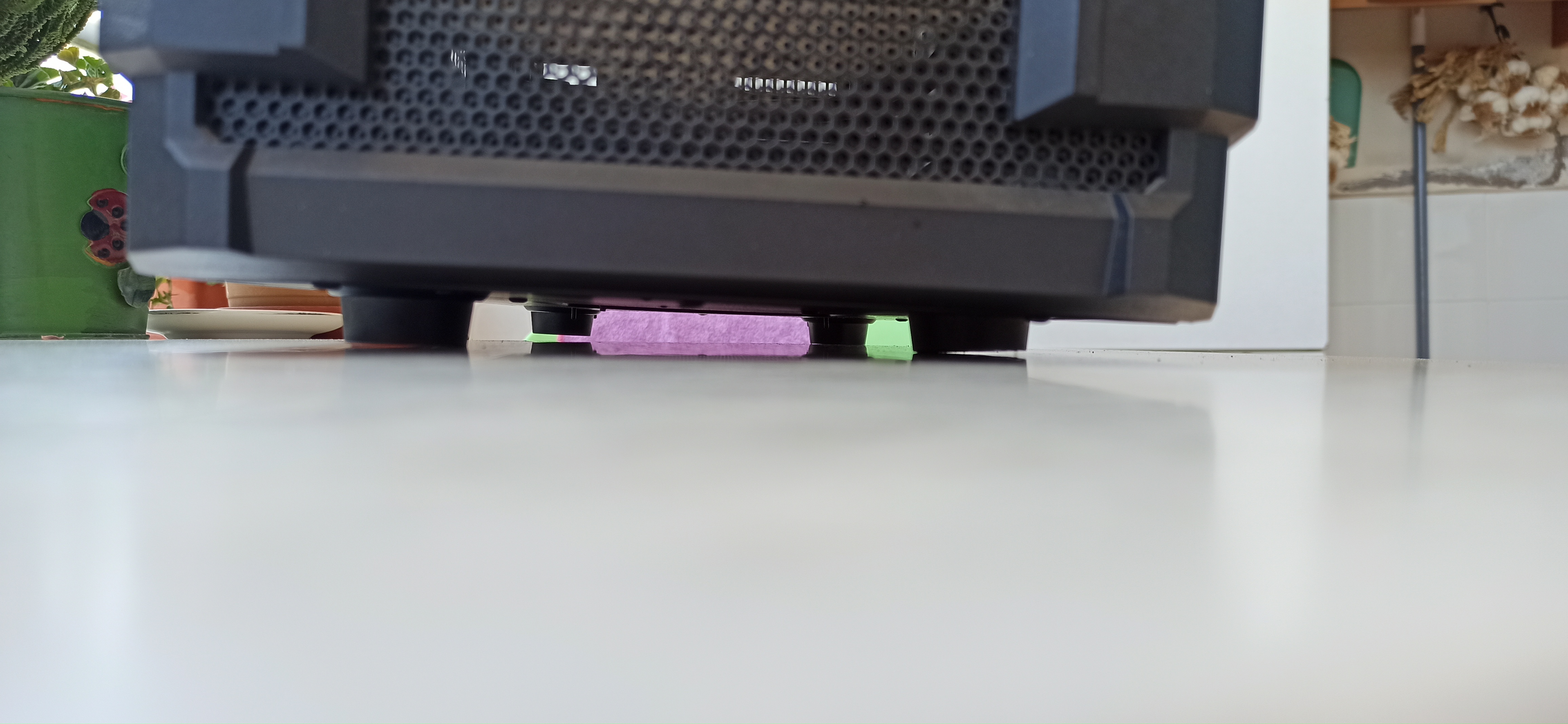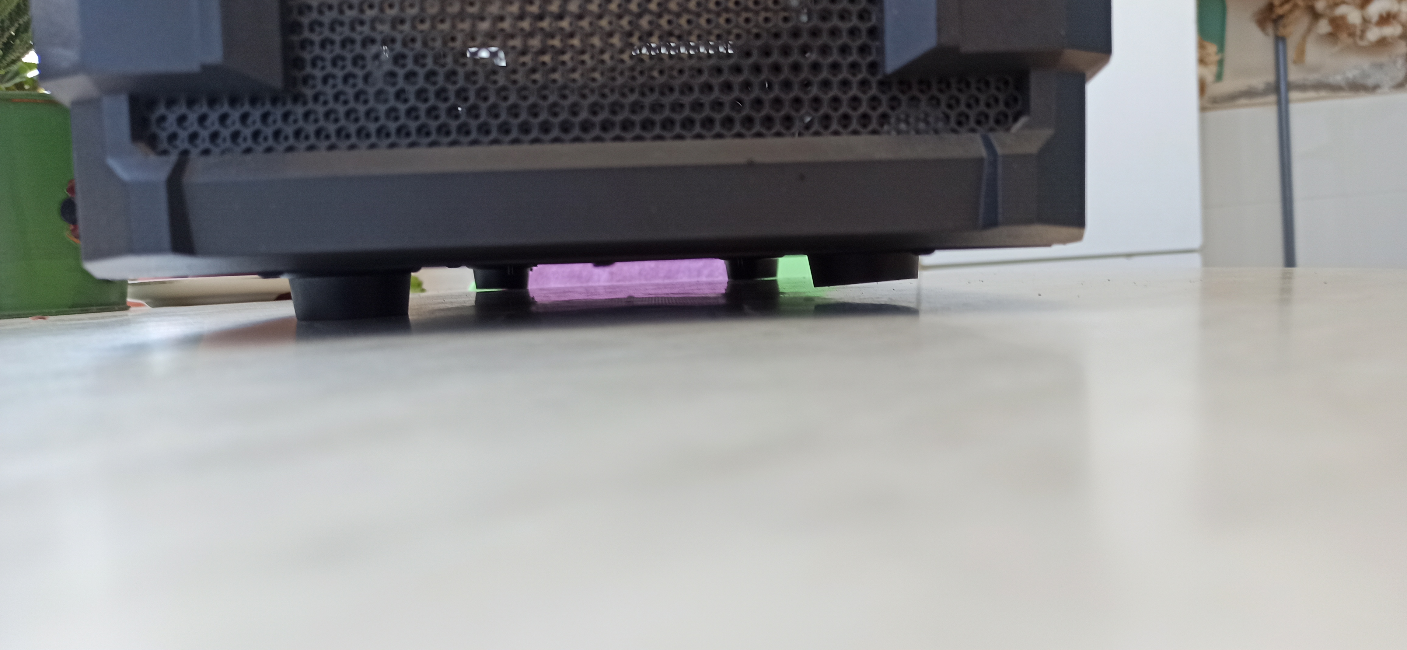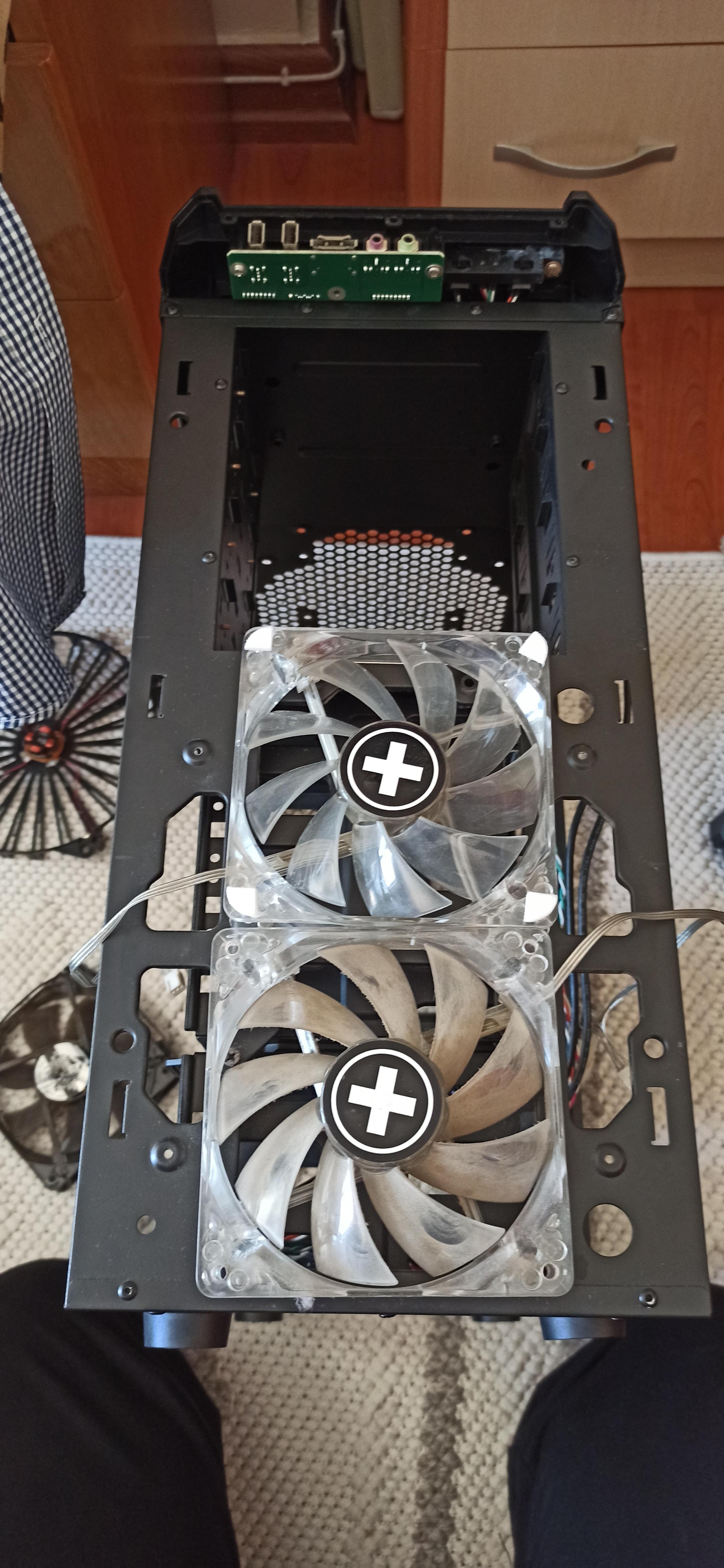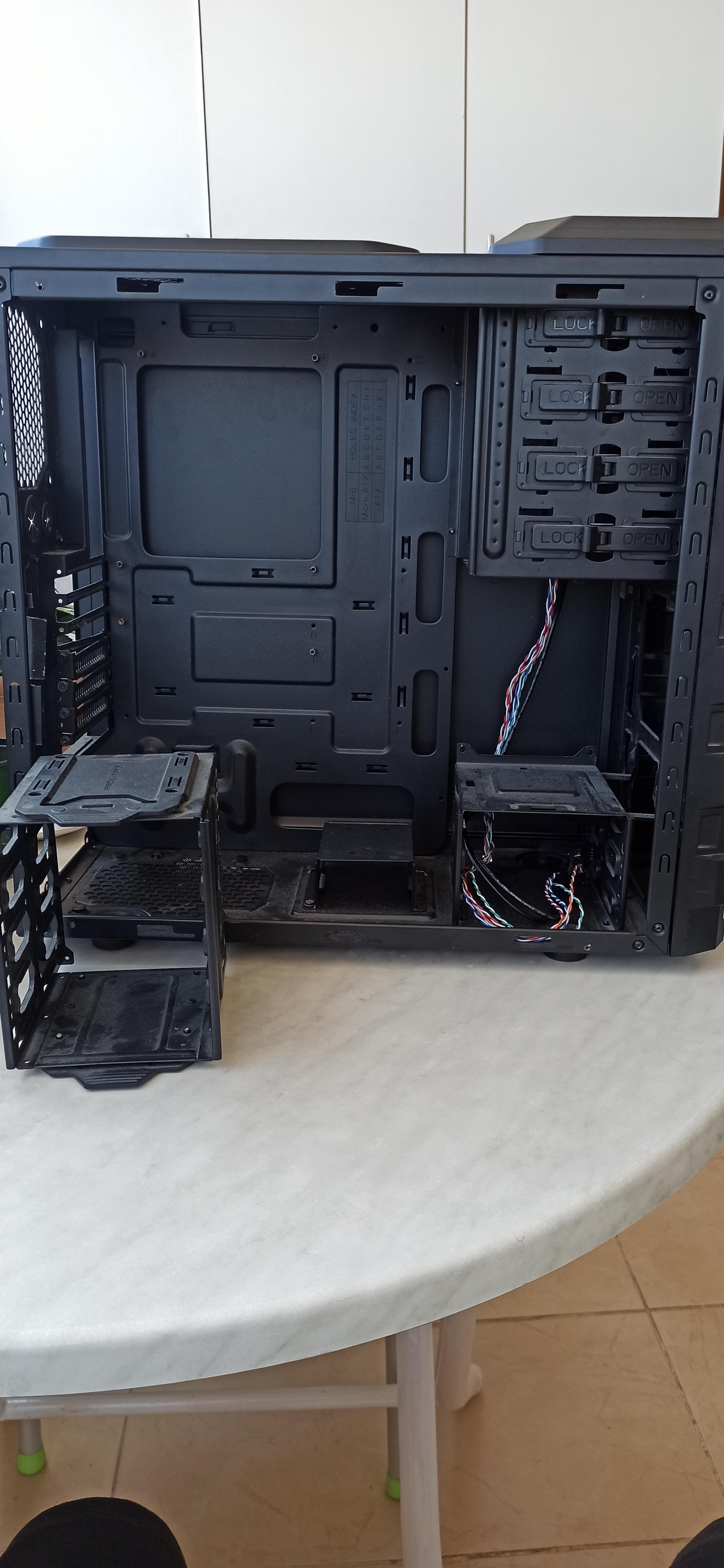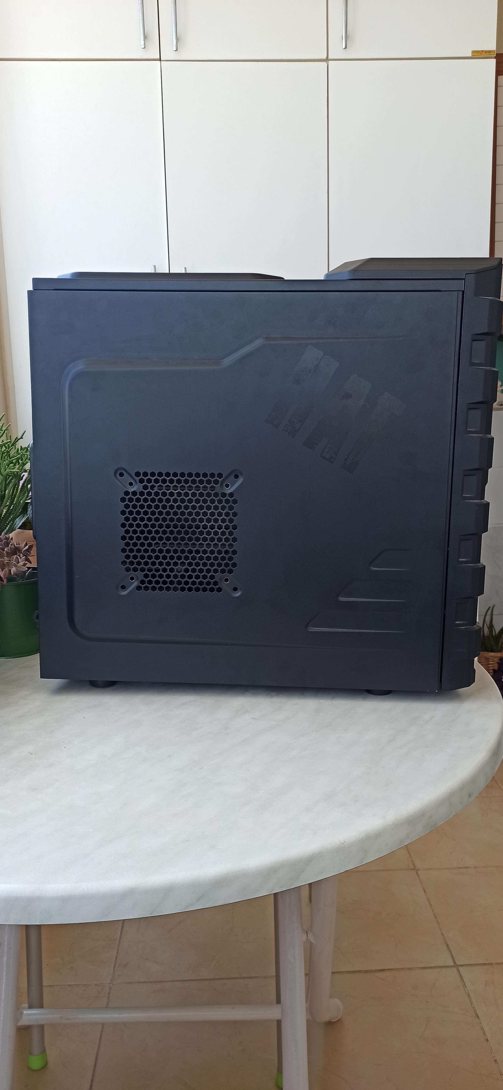 Kasanın üst plastik panelinde kırık vardı ve yapıştırdım. Hafif zımpara ve biraz boyayla kapatılabilir. Sağ ön ayağı biraz içeri girdiğinden kasa hafif yan yatıyor. Ekran kartını dikey takabilmek için arka kısımda biraz kesme yapmıştım.