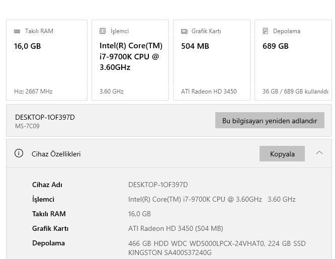 i7 işlemcili,16 gb ram ,Ssd'li Bilgisayar