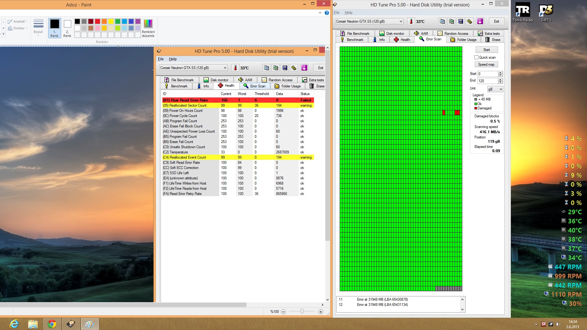| nasıl yok ya. reallocated sector count değerin artmış bu kısım ne kadar çok bad sector ile karşılaşırsa o kadar artar. |