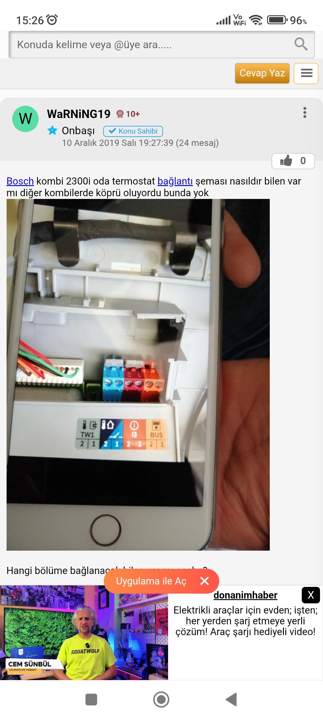 | Hayırlı olsun.ürünü tam olarak kombinin neresine taktınız.çünkü Bosch yeni serilerde mavi on/off termostat soketi birde turuncu bus yazan modülasyon özellikli termostat soketi bulunmakta. < Resime gitmek için tıklayın > |