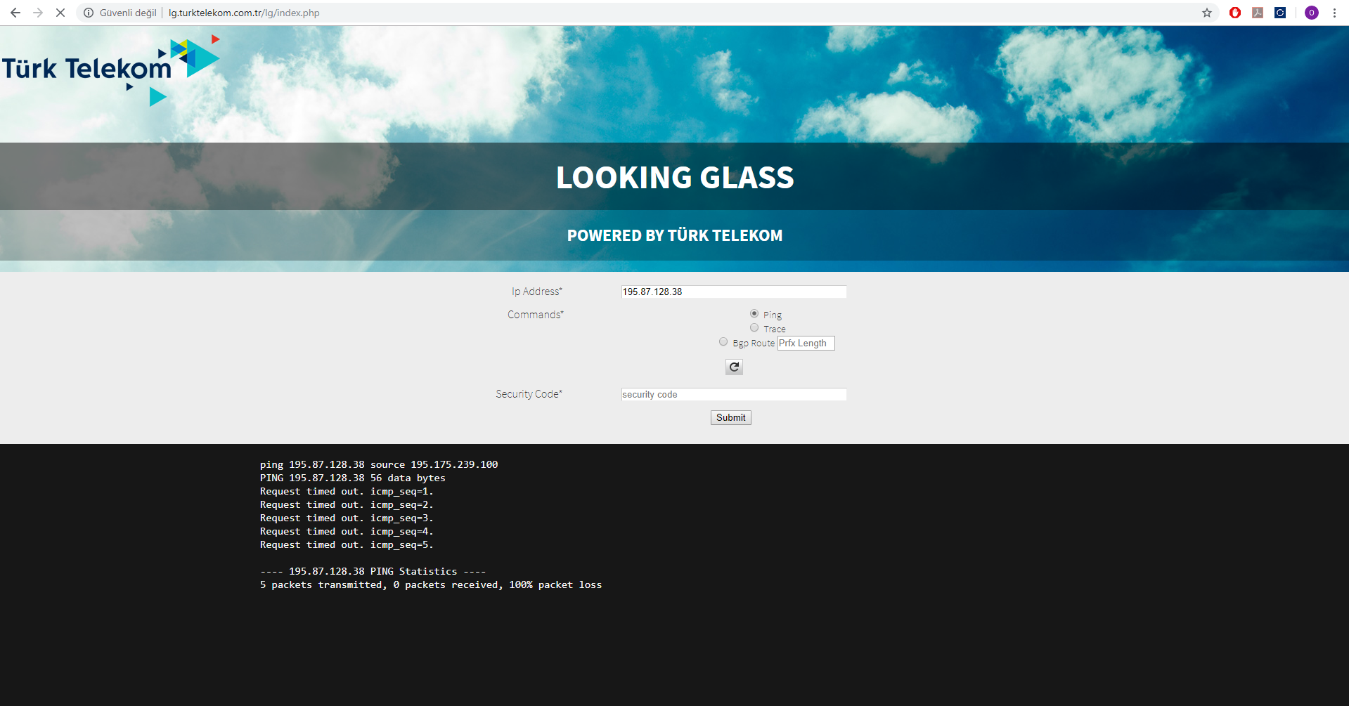 http://lg.turktelekom.com.tr/lg/ Bu adreste ip adresine 195.87.128.38 bunu yazarak ping testi yapar mısın ? @jeffogu |