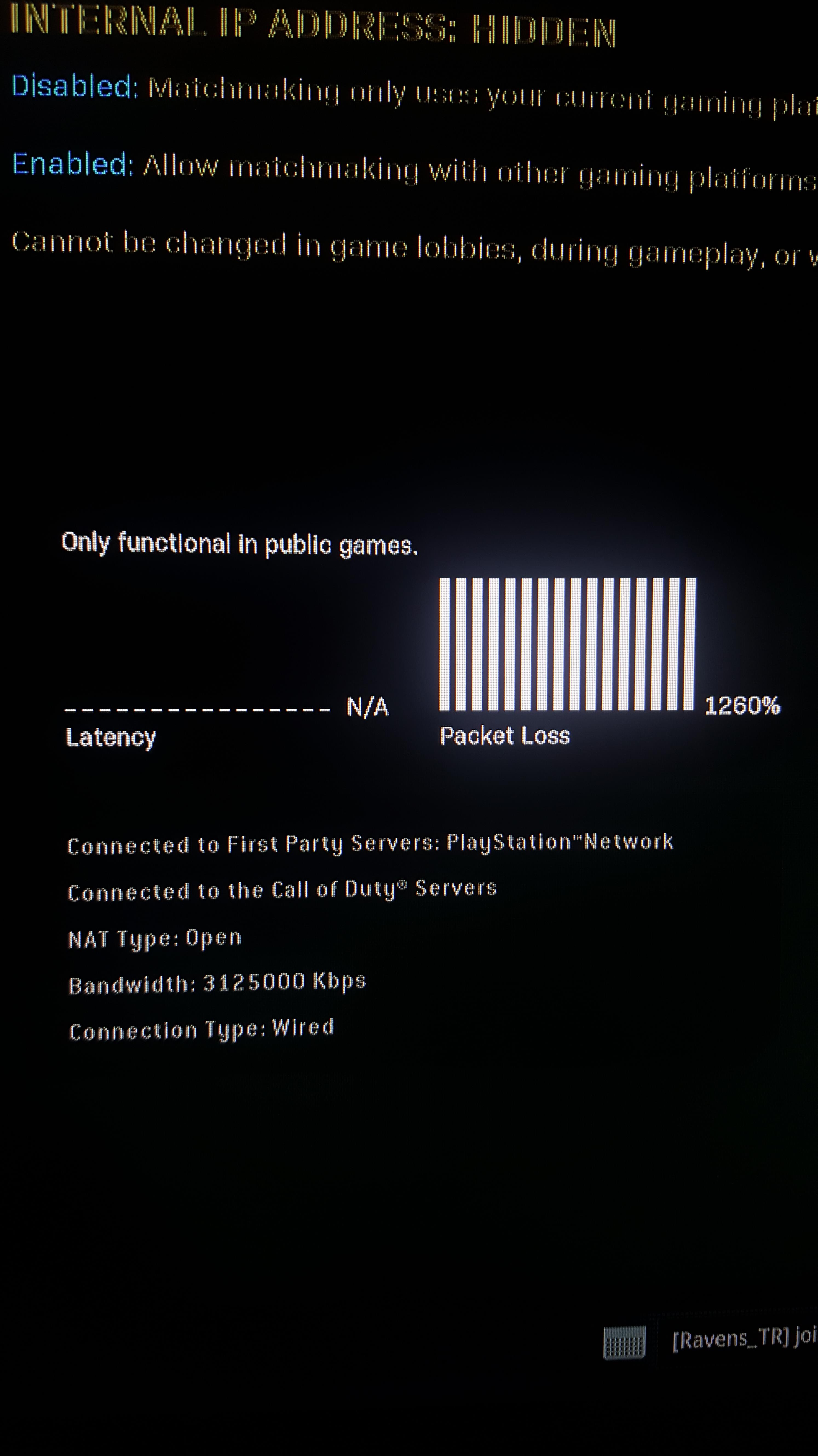 VPN ile girince %0 loss. Oyun içinde VPN kapatınca %50 loss. Manyak bir olay.