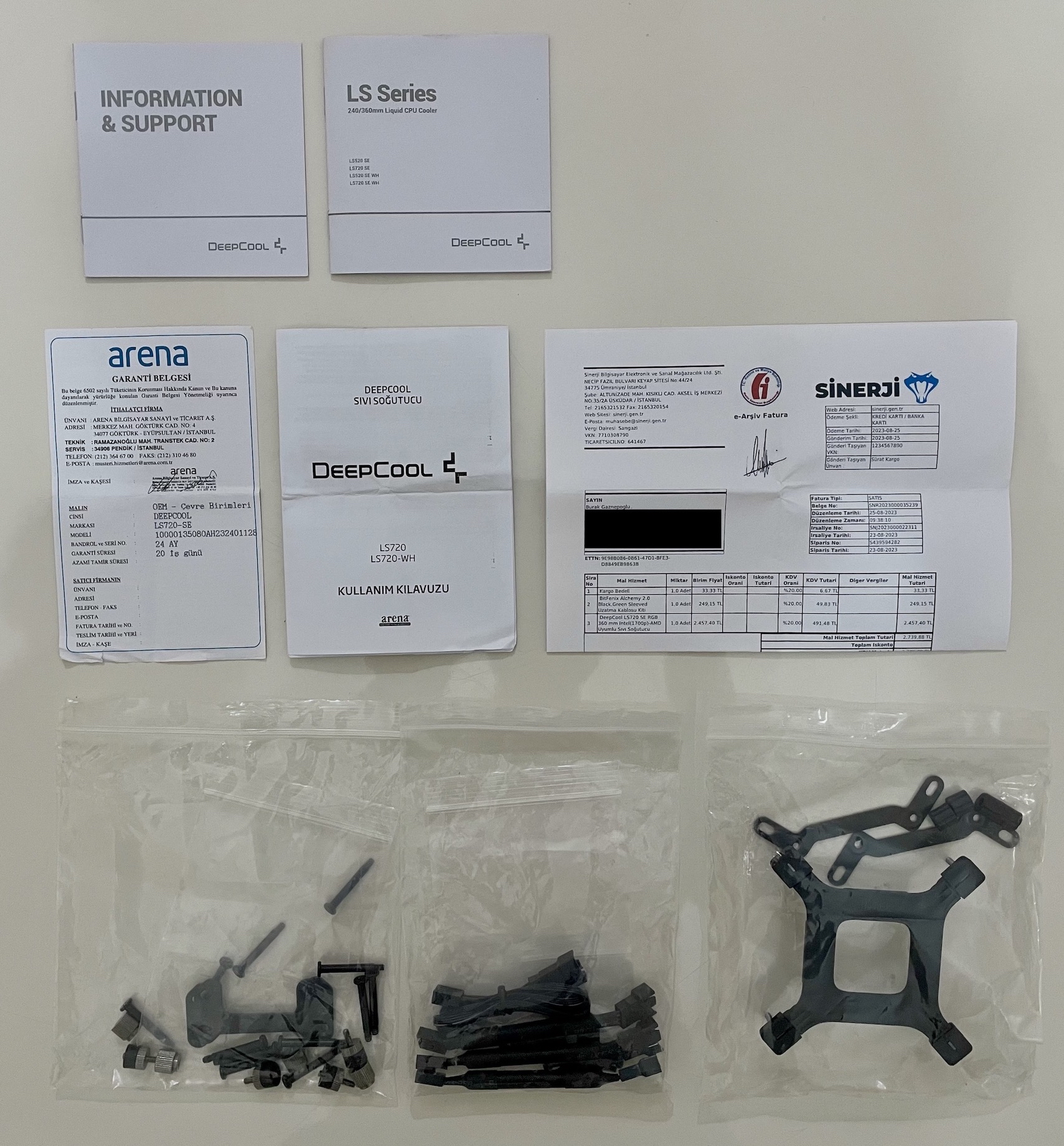 İçerik: Kutu, fatura, tüm montaj aparatları (Intel/AMD) ve poşetleri eksiksizdir. Jelatinleri üzerindedir.