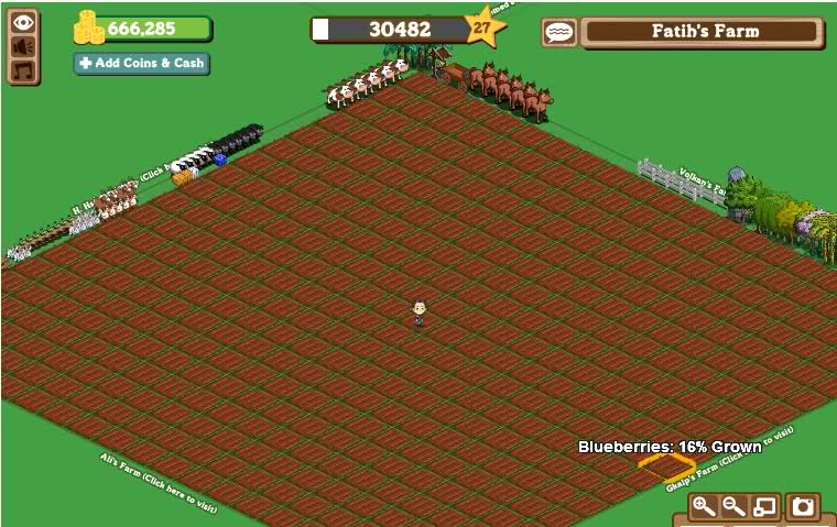| arkadaşlar belki bilmiyosunuz ama FARM TOWN diye bir oyun var onu oynayın. çok daha iyi ve gelişmiş. oyunda komşularınızla bir tarlada buluşup sohbet edebiliyorsunuz. kendinize iş bulup çalışıyorsunuz. pek çok yeni insanla tanışıyorsunuz. tav siye ederim. yine face book oyunu. |