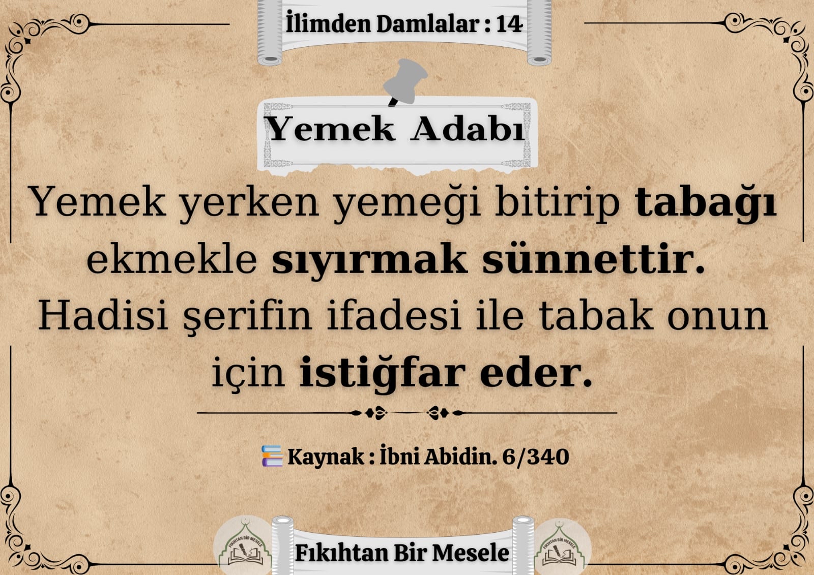 Hz. Âişe’nin bildirdiğine göre Allah’ın Rasûlü sallallahu aleyhi vesellem: “Sizden biriniz yemek yiyeceği zaman Besmele çeksin. Şayet yemeğin başında Besmele çekmeyi unuttuysa <Bismillahi evvelehu ve âhirahu> [Başına ve sonuna Bismillah] desin” buyurdu. [Sahih] {Ebû Dâvud 3767} |
