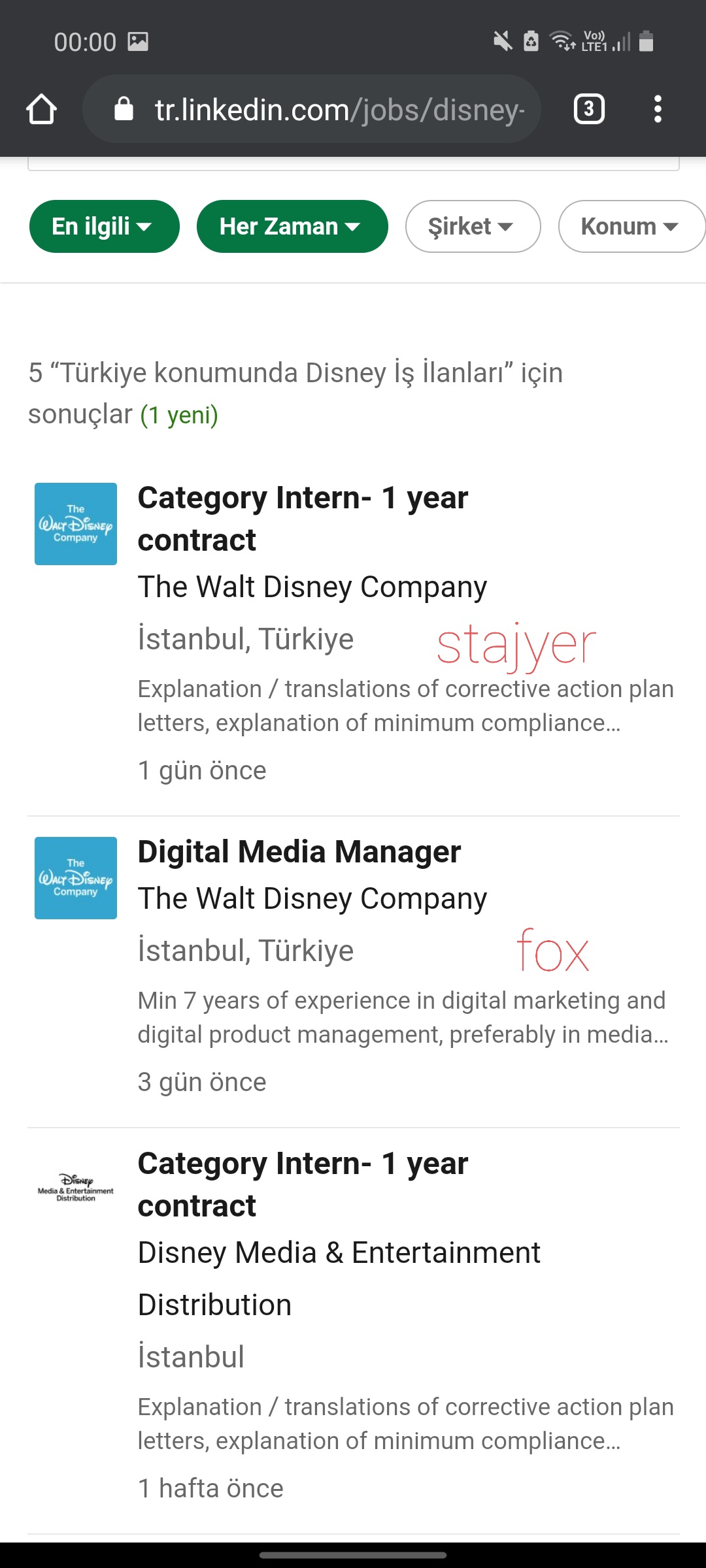 Bende baktım da iş ilanlarına Disney+ la alakalı şeyler değil şu stajyer yazan çeviriden çevirince stajyer yaizyordu belkide başka birşeydir < Resime gitmek için tıklayın > |