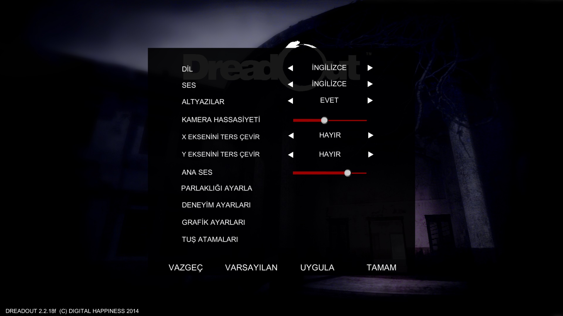 Oyunu açıp dili İngilizce olarak seçtiğinizde Türkçe olarak açılacaktır. DreadOut: Keepers of The Dark bölümü de çevrilmiştir.