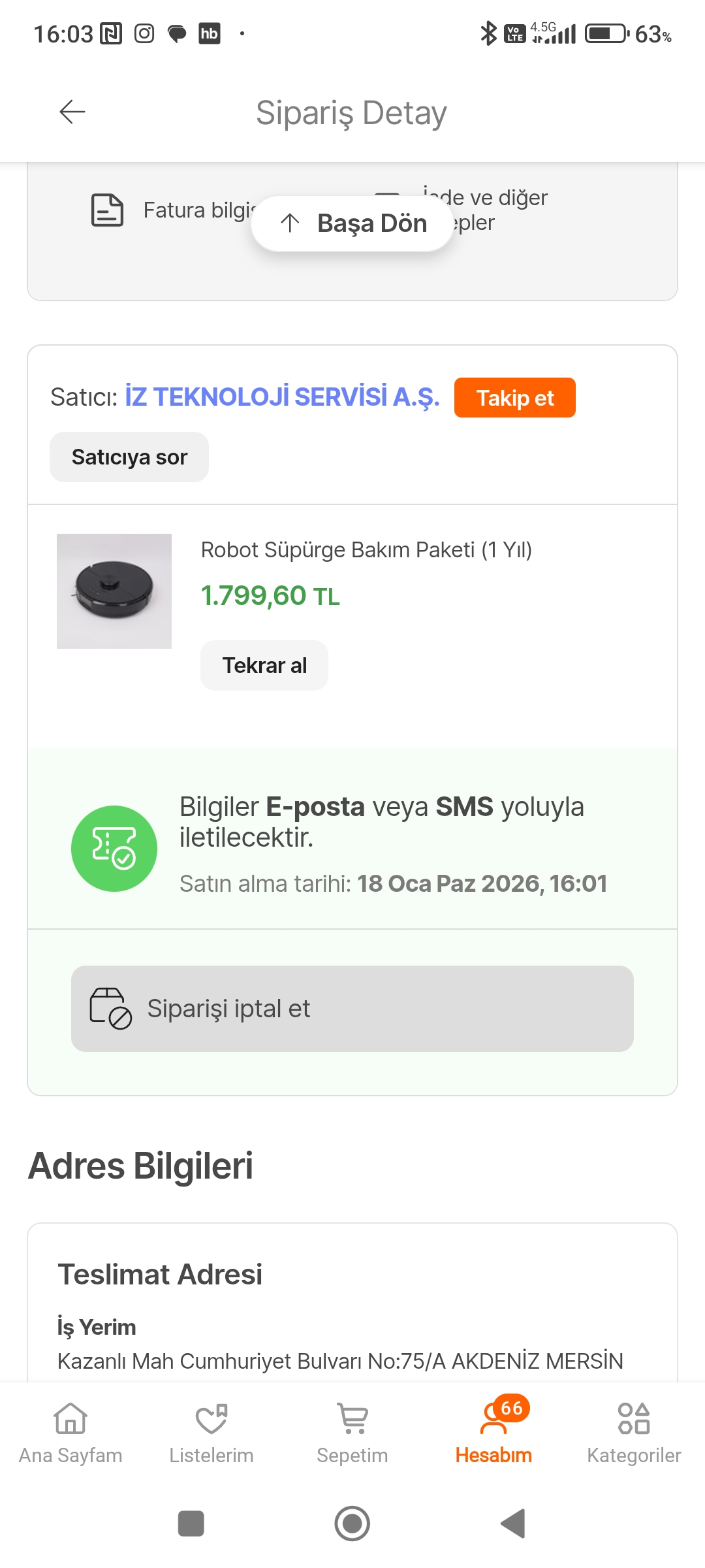 İyi günler , dreame x40 ultra aldık ama fiyat içerisine 1 yıllık bakım paketi dahil bunu iptal etmenin bir yolu var mı ? İptal edilebiliyorsa da gerek var mı sizce ? < Resime gitmek için tıklayın > |