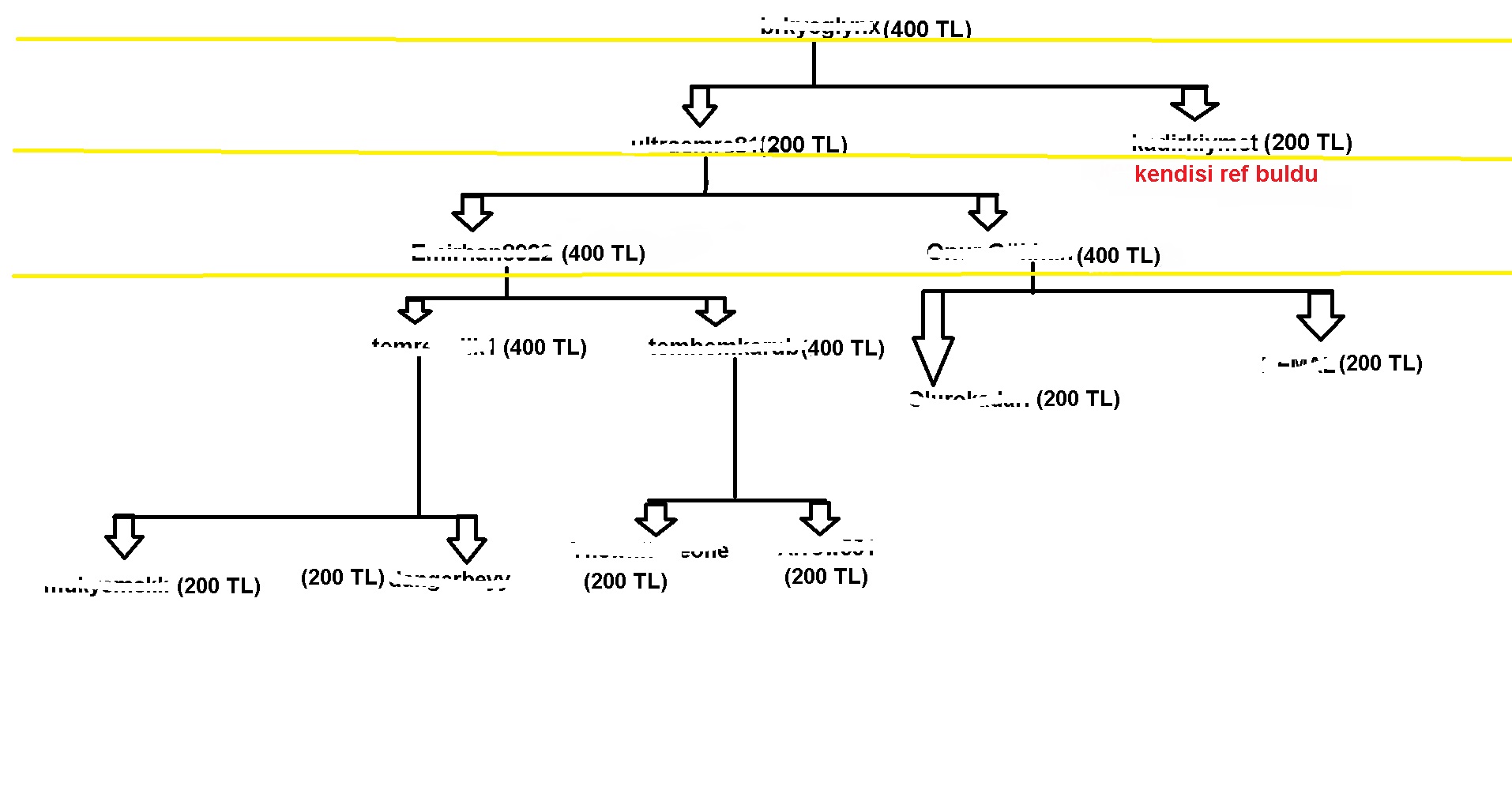 OLAY ŞU ARKADAŞLAR: Herkes kendisi üye bulamayabileceği için organizasyon yaptım gelen kodu 600e satıp üye olan ve 2 alt üye arasında paylaştırıyorum benim kârım yok, üye olduğunuzda diğer alt üye de olursa 200er dağıtıyorum eğer sıra tekrar size döner de üye yapan kod sizin olursa 200 daha veriyorum. anlamanız için alta isimler silinik resimde koydum.