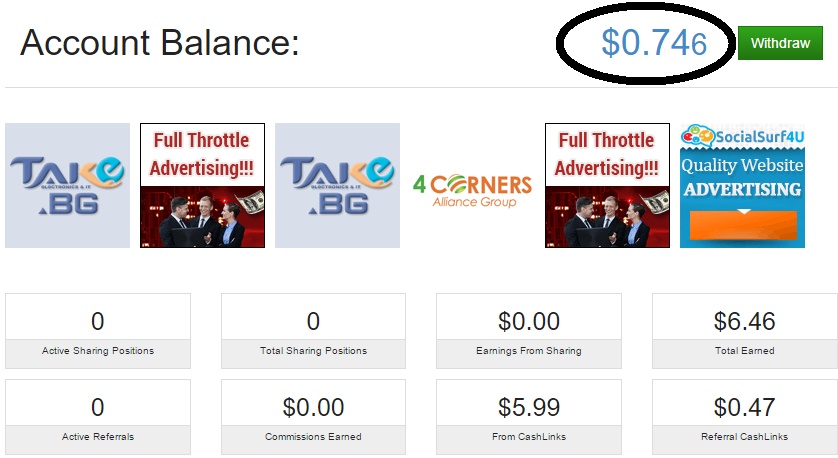 Dün ve bugün hiç siteye girmedim, şu an 1,74 dolardayım. Yeni 2 referans katıldı sponsorluğumda. Katılanlara tıklamalarından kazandıklarının yarısını da ek olarak ben ödüyorum. Min 2 dolar kazanana 1 dolar da ben ödüyorum yani. Min çekme limiti 2 dolar olduğundan bu kota konulmuştur. Aşağıdaki linkten üye olabilirsiniz... ÜYE OLUN - HIZLICA KAZANIN |