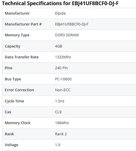 DDR3 SLOT kullanan PC anakartlar da sorunsuz kullanılır. İADE YAŞANMAMASI İÇİN ; LÜTFEN ANAKARTINIZIN ÖZELLİKLERİNE İNTERNETTEN BAKARAK DESTEKLİYORSA ALINIZ ! Özellikleri: Marka Model: ELPİDA EBJ41UF8BCF0-DJ-F 4GB PC3 – 10600 CL9 240 – Pin DIMM 4 Gb. 1333 Mhz CAS Hızı : 9 ns 1.5 Volt DDR3 slot Her iki yüzde 8 er chip var.