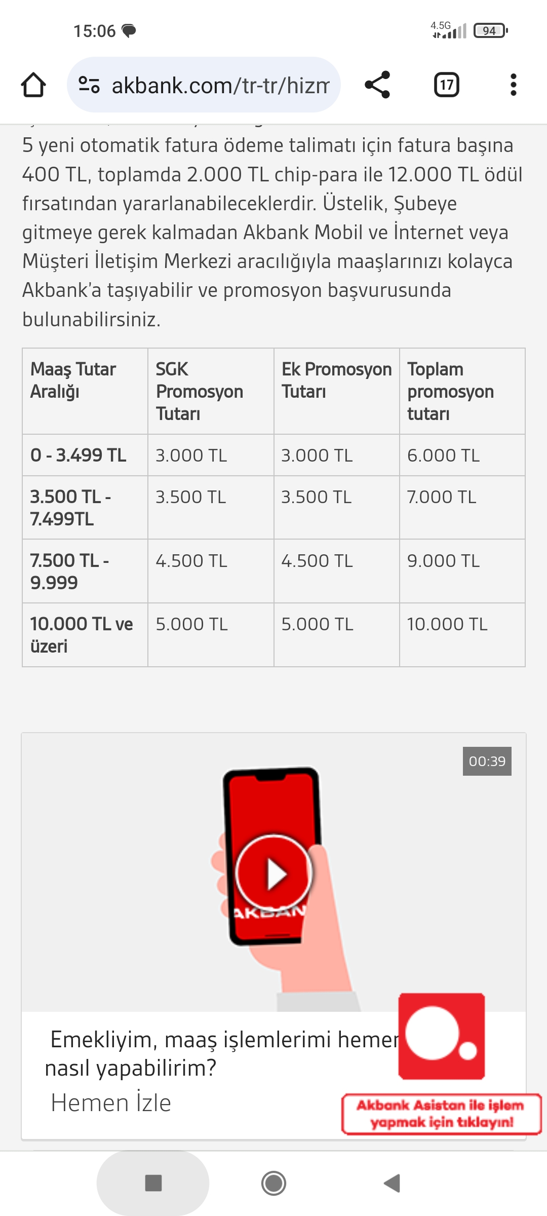| Arkadaşlar 13 martta akbank promosyon için başvurduk hesap açtık. Maaş ayın 1 inde alınacağından daha promosyonu almadık. şimdi yeni şartlarda 3,500 tl dezavantajımız oluyor. Biz hangi tabloya göre alırız promosyonu. |