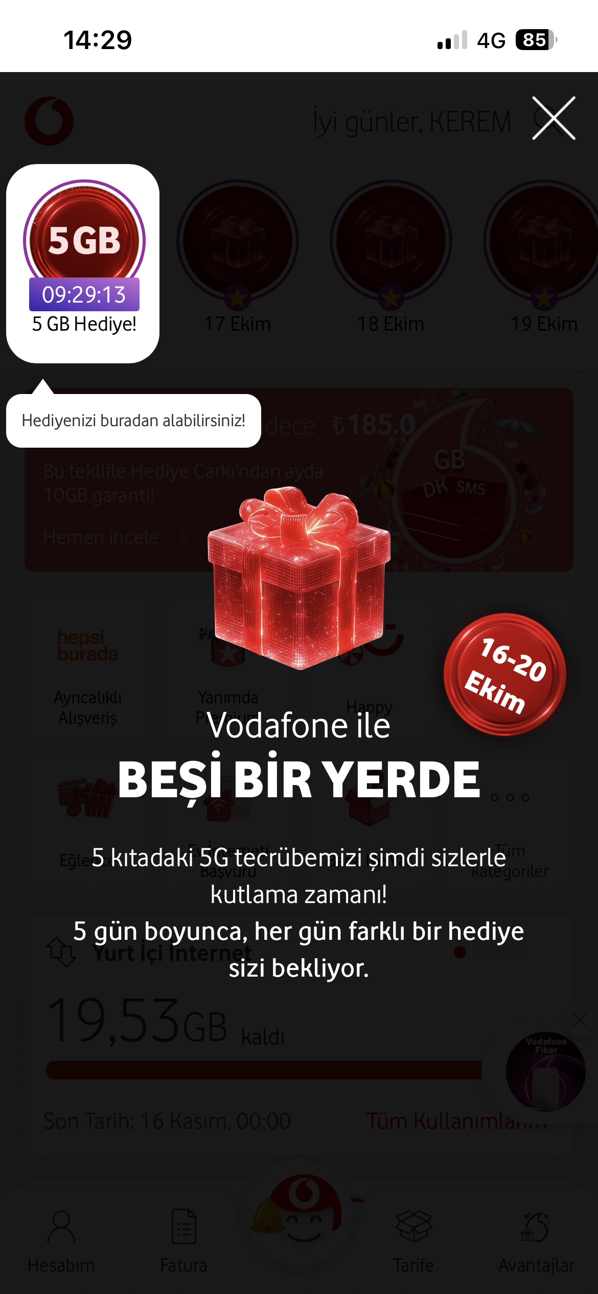 VODAFONE 5 gün geçerli 5 GB hediyenizi Yanımda uygulamasın dan alabilirsiniz; < Resime gitmek için tıklayın > < Resime gitmek için tıklayın > < Resime gitmek için tıklayın > 5 kitadaki 5G tecrubemizi besi bir yerde hediyeleriyle kutluyoruz! Birinci gunun surprizi olan 5 gun gecerli 5 GB hediyenizi hattiniza tanimladik. Hediyeniz 21.10.2025 11:04:08 tarihine kadar gecerlidir. Gule gule kullanin! |
