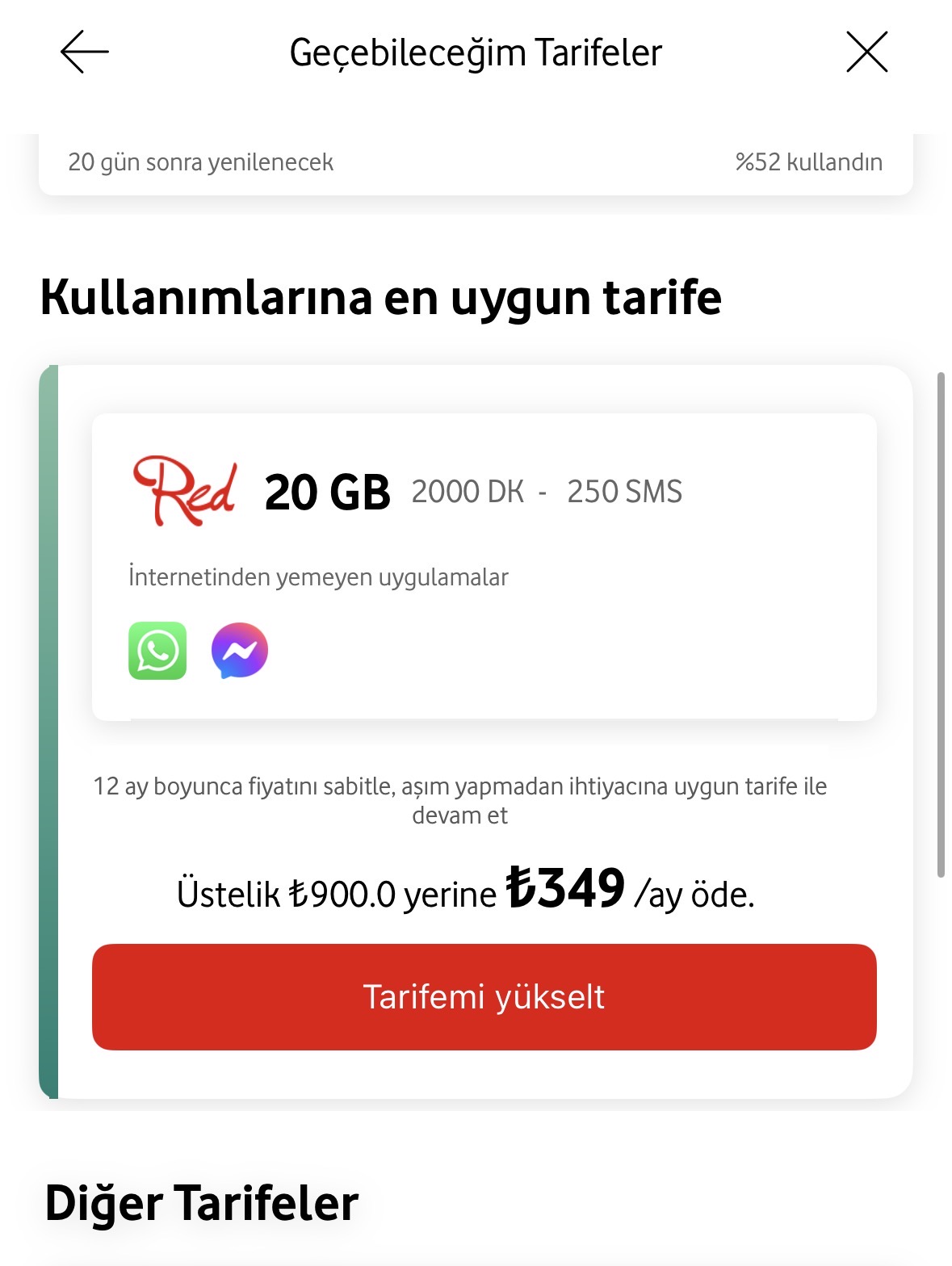 20 gb için vodafoneden devam edersem 350 tl, halihazırda 330 ödüyorum zaten. Başka firmalarda da uygun bir tarife bulamadım. Gözümden kaçan var mı acaba? |