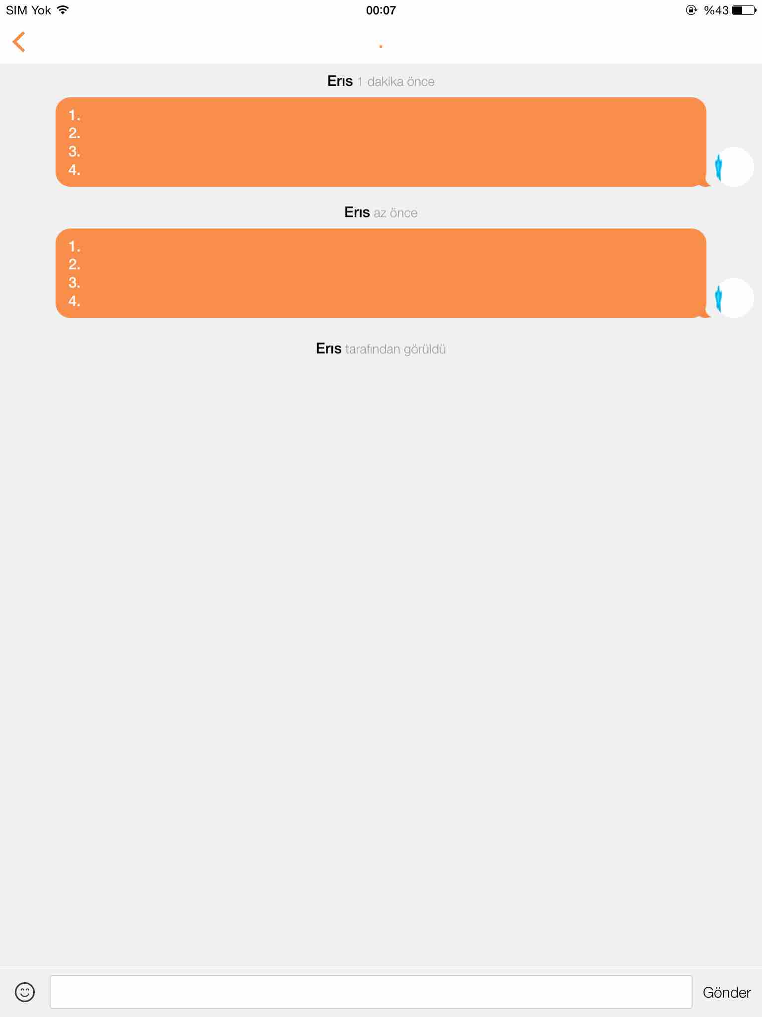 10 buton alanını çok tutmuş olabiliriz, orası şu anda karışık. yeni tasarımla birlikte üzerinden geçeriz tekrar. 5 metne gömülü link özelliği şu anda iOS uygulamamızda desteklenmiyor 34 hatasının sebebi 31.madde ile aynı (pm’de şu anda yalnız düz metin görünür. Bold, altı çizili, foto vs. yok şu anda) 45 anlayamadım tam olarak? testflight'dan uygulamayı mı sildiniz bu arada? gün içinde yeni sürüm gönderilecek, tekrar emaildeki link'ten aktif edebilirsiniz. |
