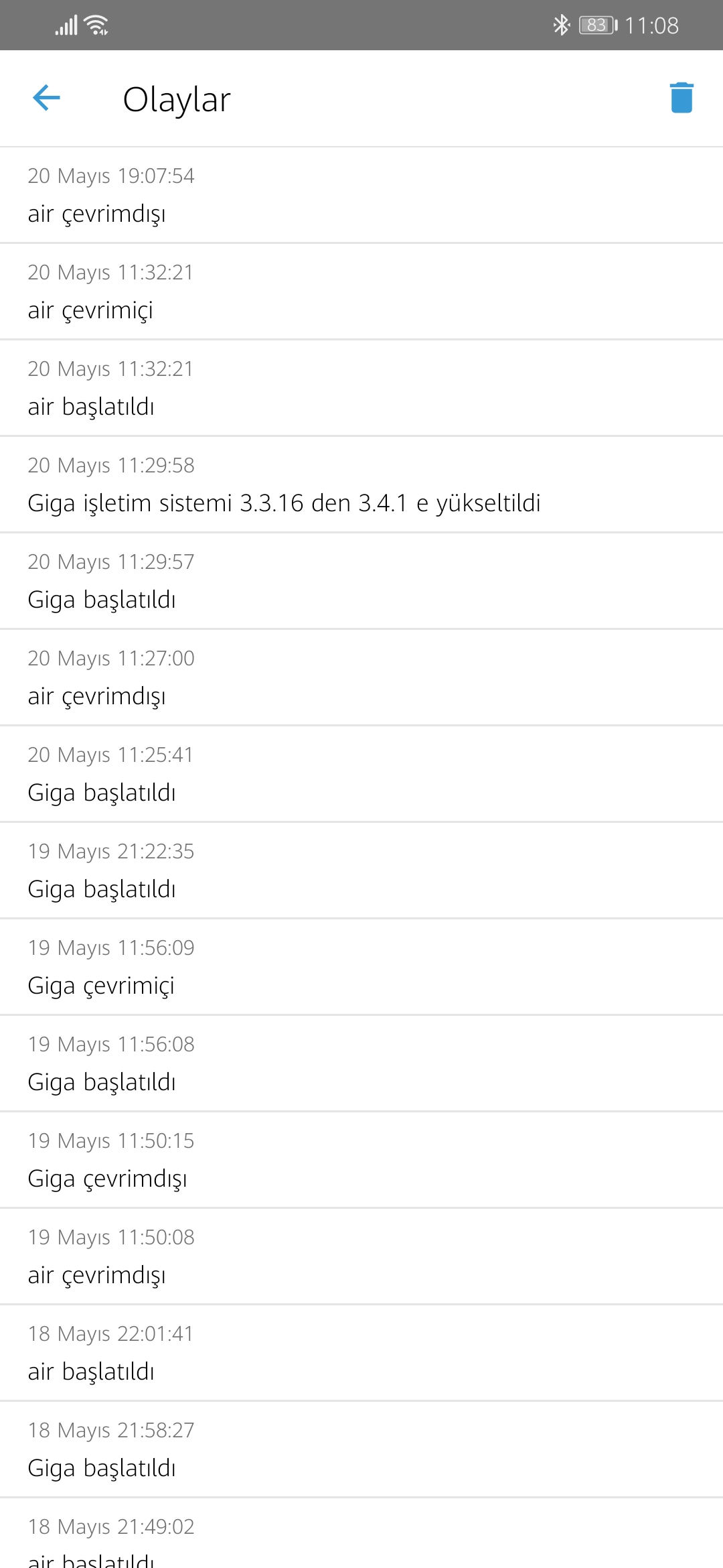 Anlayamadım loglarda siz mi cihazı kapatıp açıyorsunuz, yeniden başlatıldı derken? Mesh yapıda ise, Giga ve Air kaç ile bağlı Mesh sistemden bakabilir misiniz? sinyal aralarında nasıl? çok uzaksalar biribirne biraz yaklaştırmaya deneyin. 5 mhz de bağlanacak mesafeye alabilirseniz çok iyi olur, 2,4ghz başka komşularla fazla çakışır, etrafınızda fazla sinyal varsa, cihazlar başka banta otomatik geçemeğe çalışırken kopup bağlanabilir. tarama anında bu normal, 5ghz daha rahat geniş bir bant. mesh arası bağlantı 2,4 de kalması gerekiyorsa, giga da 2,4 bandını sabitleyin. 24 saatte bir tarasın. öyle bir deneyin. |