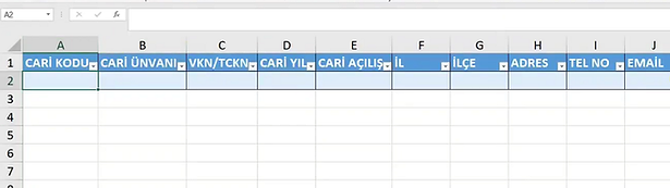Cari için gerekli Veri başlıklarını ekledikten sonra bunu tabloya dönüştürüyoruz.