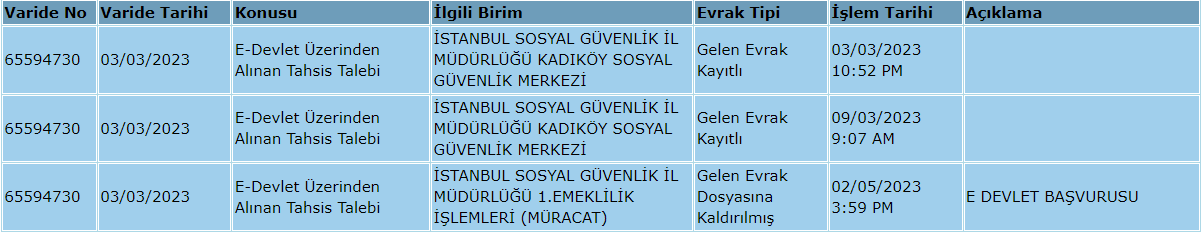 | 7mart başvuru e-devletten, bağcılar sgk hala beklemede, Alo 170 den kaç kere kayıt açtırdım yine sonuç alamadım, bağcılar sgk ya gittim yine sonuç alamadım, bekletip bekletip sorun var şunu halledin bunu halledin ondan sonra tekrar başvurun demelerinden korkuyorum, bu kadar bekleyip zaman kaybettirip sonra yine uzun bir bekleme sürecine girmek çok kötü olacak. |