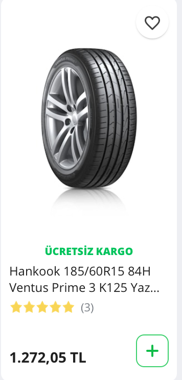 Bende kullanmıştım şirket aracında, güzel lastik.. Ama fiyatı şu ara hankook'lara fazla yakın. iyidir hoştur yerlidir ama ventus prime 4 yerine olmaz.. |