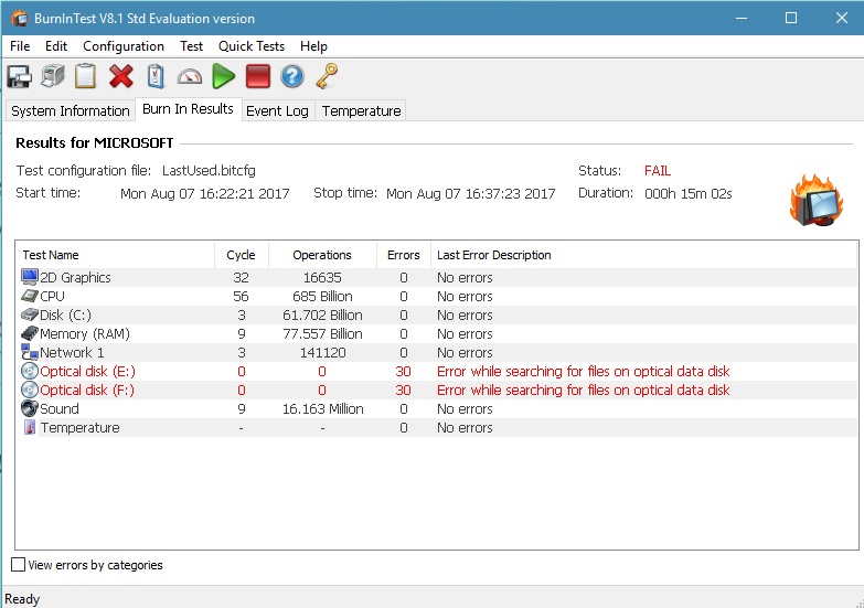 Yaklaşık 6-7 kere oldu ve her seferinde farklı durdurma kodu ile karşılaştım hangisi tekrarladı o konuda bilgim yok. Ayrıca BurnInTest ile tarama yaptırdım sonuçlar bunlar: