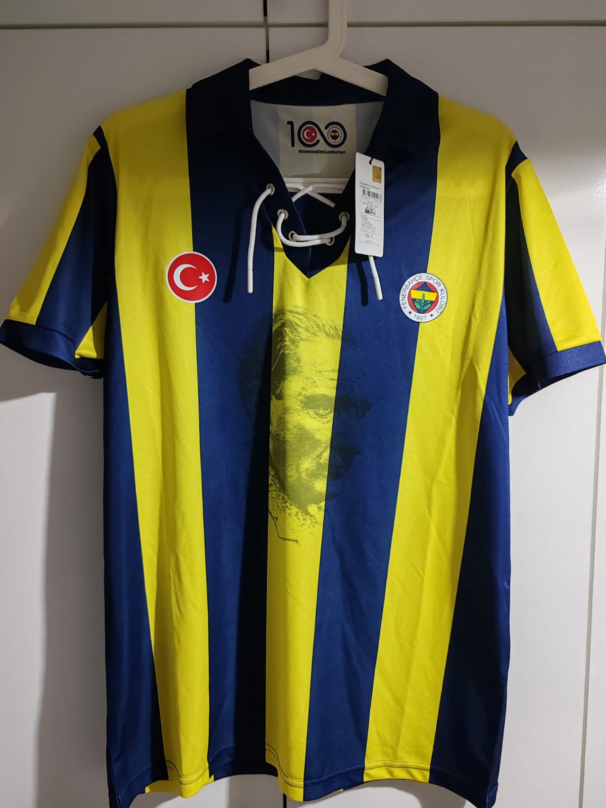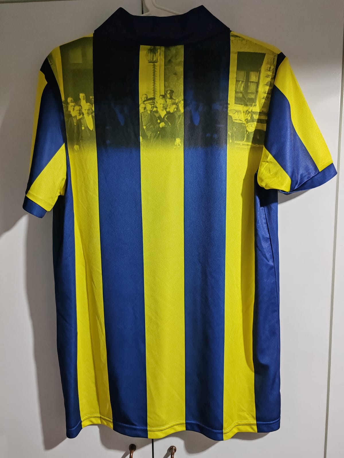 10 - Fenerbahçe 100.Yıl Çift Taraflı - S Beden - ALTIN RENGİ TARAFINDA ARMALARDA SARARMA VE HAFİF KALKMA VARDIR - ARKASINDA 13 NUMARA "NUMB" YAZMAKTADIR ÇUBUKLU TARAFINDA HERHANGİ BİR YIPRANMA VS. YOKTUR, SIRT KISMINDA YAZI VE NUMARA YOKTUR S BEDENDİR ANCAK GENİŞ KESİM OLDUĞU İÇİN M BEDEN GİYENEDE UYGUNDUR