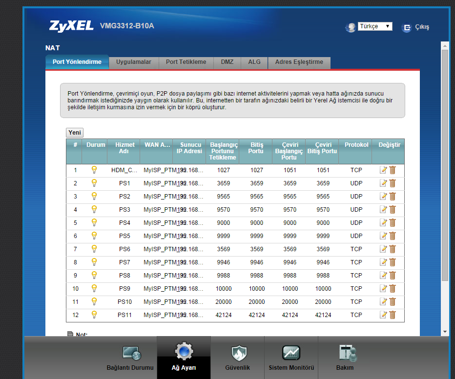 Sorunum hala çözülmedi arkadaşlar Allahını seven yardım etsin delircem.Eve geldim bi maç atayım dedim hop yine net gitti yine mağlup.Port aç diyen arkadaşları dinleyip dün akşam modem servisini arayıp uzaktan yardımla port açtırdım resimdede görüldüğü gibi.EA sitesindeki portları yazdım hep ama hala sorun çözülmedi.En az 10 mağlubiyet bu şekilde aldım ne olur