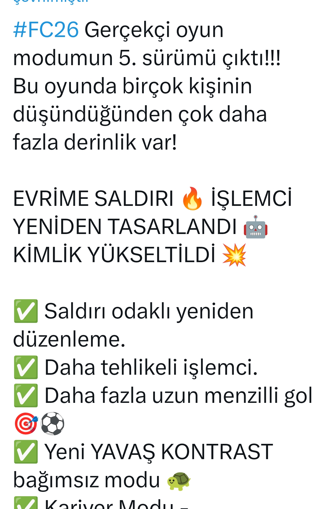 Beyler sezon başından bu yana champions(9-10-11 win ortalama), rivals(div 3 üm), canlı etkinlikler vs. olsun tüm ödülleri neredeyse topluyorum, günlük 85x3 86x3 gibi paket SBC lerini de atlamadan yapıyorum. TOTY döneminden bir buçuk hafta öncesine kadar da paket biriktirip TOTY haftasında açtım. Abartmıyorum bugüne kadar aldığım en iyi kart TOTY ML Marqunhios, 88 kış jokerleri Tah ve 89 Kimmich kartıdır. Şansıma güvenmediğim için ikon sbc yapmam, kulüp çok birikti diye yaptım ondan da 90 Best attı. Bu nasıl bir hesap şansıdır, herkeste durum böyle mi? EA paket şanslarını bu kadar düşük tutup, vermediği iyi oyuncuları FC 27 çıkınca bi tarafına mı sokacak? Ulen ver şurdan bir kaç tane düzgün kartta oynadığımız oyundan biraz keyif alalım da seneye de FC 27 almak için iştahlı olalım Allah ın belası oyun. Harcadığım emek vakte üzülüyorum, karşılığını alamadığım bir oyun oynuyorum ya. < Resime gitmek için tıklayın > |