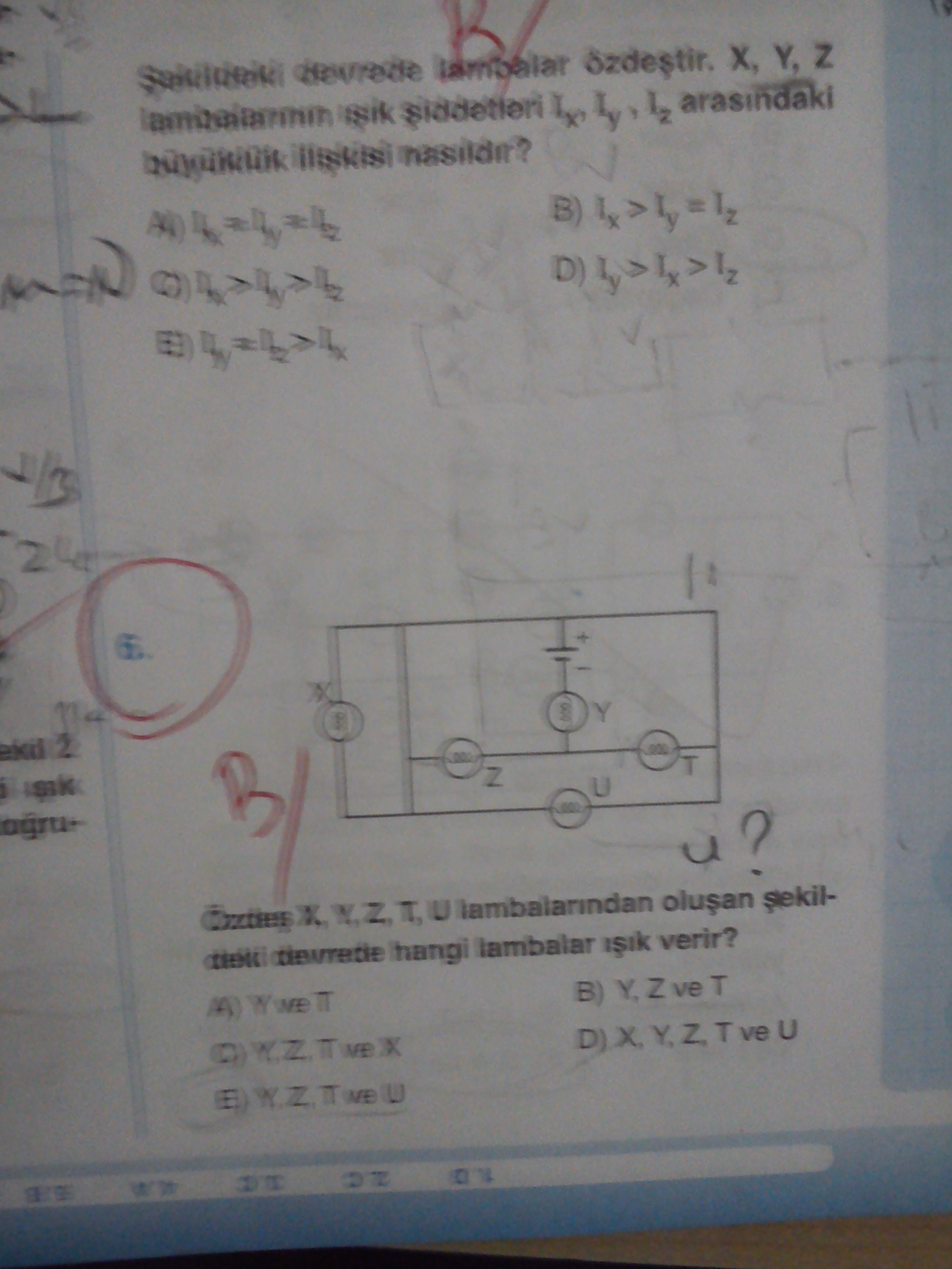 palme fizik? those were the days my friend! nostaljiyi bırakıp çözümlere gelelim: fizikte ilk soruda şimdi sorulan verilen bilgiye göre bu cisimlerin özkütleleri sıvıdan büyük olduğu dibe gideceklerdir.kaplardaki ağırlaşma bağıntılarını yazıp eşitlersek soru gelicektir:http://sketchtoy.com/62246030 2.soruyu bende hocaya sorduydum atışlarla ilgili birşeylerden yaptıydı galiba, optikle aram pek iyi olmadığı için bunu atlıyorum.fizikte 3.soruyu ivme hız ilişkisinden yararlanarak ufak bir grafik çizerek halledebiliriz:http://sketchtoy.com/62246080 elektirk sorusundada hiç çözmeye çalışmadan direk ipucunu vererek soruyu çözebiliriz gibime geliyor: bir lambanın bir ucundan çıkıp hiçbir pil veya dirence uğramadan diğer ucuna geçbiliyorsak o lamba kısa devre olmuş demektir.bunu soruda X ve U lambalarına uygularsan soru çözülmüş olur.elektirk sorusundan sonraki diğer iki soru tıpatıp aynı sorular 2.olanın hız-zaman grafiğini çizersek(3.sorudaki gibi) soru gelecektir:http://sketchtoy.com/62246136 ilkinide aynı yöntemleri uygularsan çıkar.(çözülmezse onada bakarım sorun değil) sondaki bakır küreli soruyuda hocaya havale ettiydim gibi hatırlıyorum ve maalesef şuanda aklıma bir çözüm yolu gelmiyor. |
