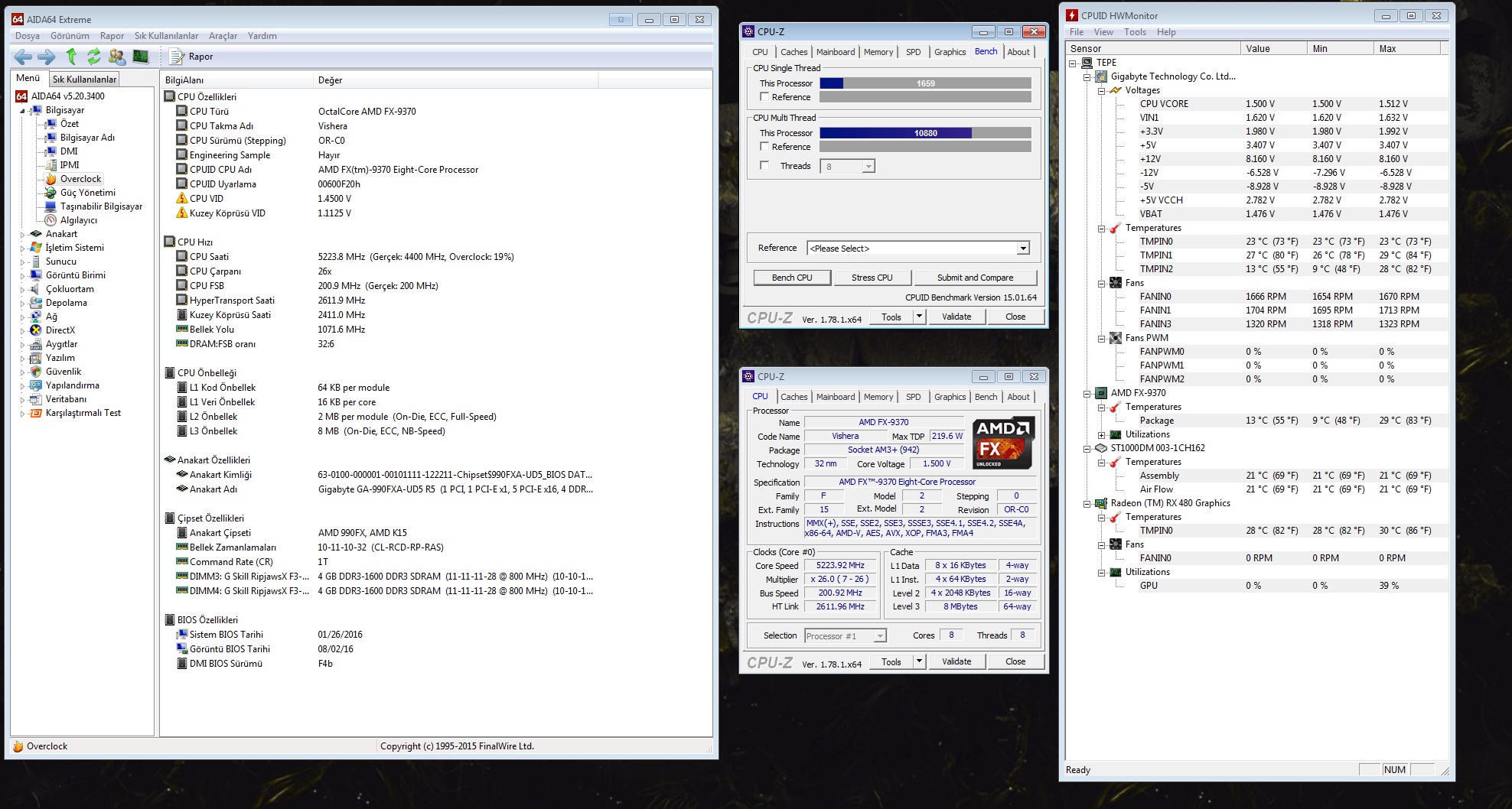 | Anakart soğutucu ve güç kaynağı modelleri nedir. Gigabyte anakart ise benim 5 ghzlik ayarların fotosunu atabilirim. |