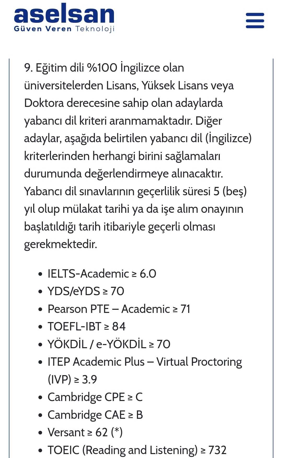 Aselsanda yds ve yökdil de geçerli, ikisinden de 70 ve üstü istiyor. Bu sınavlar hakkında bilgileriniz nelerdir? Genel tablo resimde. Havelsan ve taide yds/yökdil geçerliliğini göremedim.  < Resime gitmek için tıklayın >  |