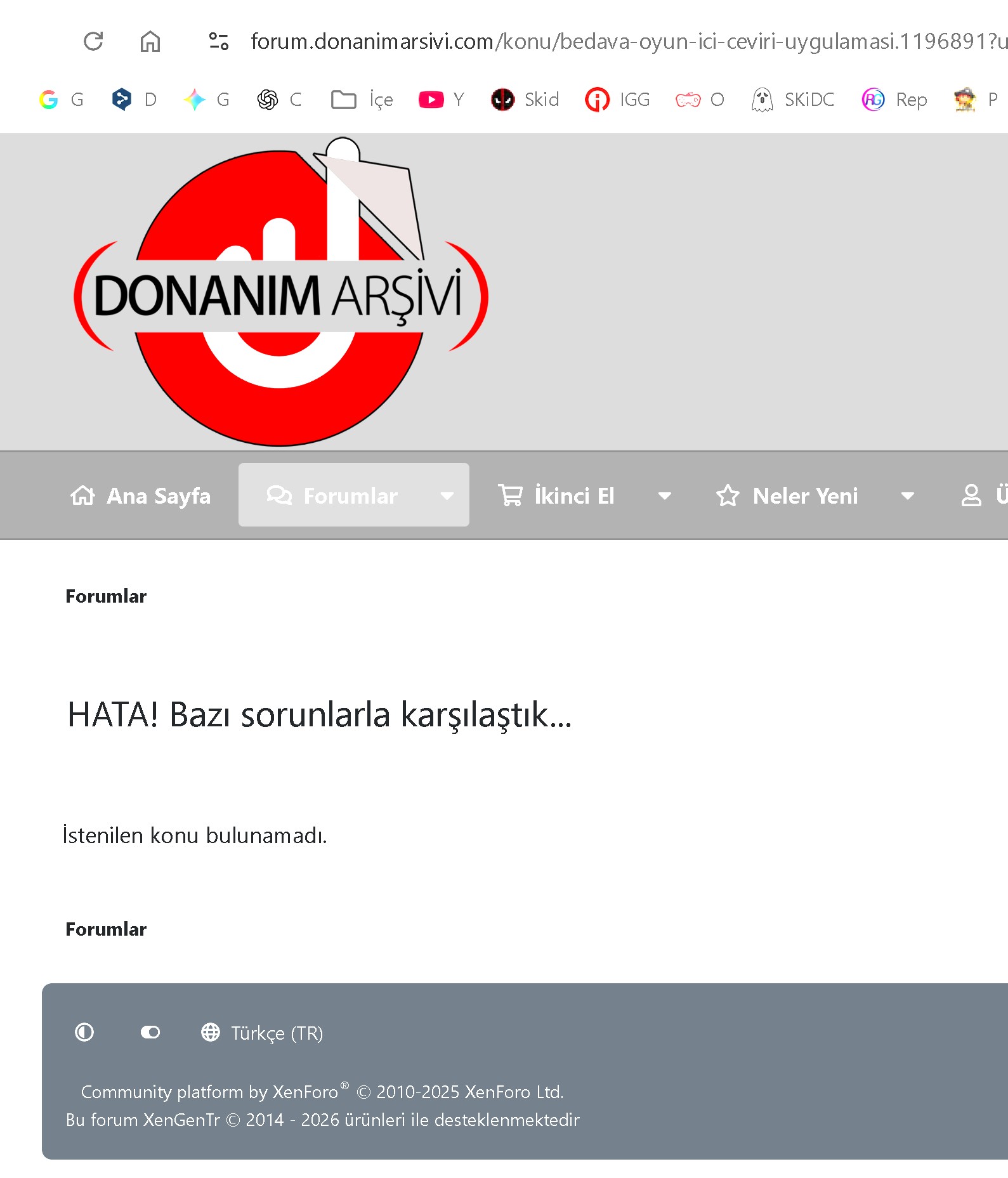 Güncel IL2CPP Kurulum Adımları (BepInEx yöntemi) Arkadaşlar, sonunda güncel, çalışan kurulum adımlarını buldum ve AI Olympius oyununda başarıyla çalıştı. 1- Oyunun IL2CPP mi Mono mu olduğunu kontrol et. OyunAdı_Data\il2cpp_data\Metadata\global-metadata.dat dosyası varsa IL2CPP’dir. Yoksa büyük ihtimalle Mono’dur (ve eski ReiPatcher yöntemi geçerlidir). 2- BepInEx 6 (IL2CPP) sürümünü indir. BepInEx Releases sayfasından: https://builds.bepinex.dev/projects/bepinex_be Windows 64-bit oyunlar için BepInEx_UnityIL2CPP_x64_6.x.x.zip 32-bit oyunlar için BepInEx_UnityIL2CPP_x86_6.x.x.zip (Ben BepInEx-Unity.IL2CPP-win-x64-6.0.0-be.738+af0cba7.zip dosyasını indirdim.) İndirdiğiniz ZIP’i oyunun EXE dosyasının olduğu ana klasöre çıkarın. 3- Oyunu bir kez çalıştır. Bu adım BepInEx’in BepInEx/ ve BepInEx/config/ klasörlerini oluşturmasını sağlar. İlk çalıştırmada biraz geç açılır; bu normaldir. 4- XUnity Auto Translator (IL2CPP BepInEx paketi) indir. XUnity Auto Translator Releases sayfasından BepInEx_IL2CPP ibaresi olan ZIP’i indirin. Mono sürümü değil, IL2CPP olanı almalısınız. https://github.com/bbepis/XUnity.AutoTranslator/releases (Ben XUnity.AutoTranslator-BepInEx-IL2CPP-5.4.5.zip dosyasını indirdim.) 5- XUAT dosyalarını oyuna kopyala. ZIP’teki tüm dosyaları yine oyunun EXE’sinin olduğu yere çıkarın. (mevcut BepInEx klasörü ile birleşecek şekilde). BepInEx/plugins içine XUAT DLL’leri otomatik yerleşir. 6- Oyunu tekrar çalıştır. BepInEx/config/AutoTranslatorConfig.ini dosyası oluşur. Burada Language=tr, FromLanguage=auto gibi ayarları yapabilirsiniz. Çeviri hizmeti (Endpoint= satırı) Google, DeepL vb. seçilebilir. (Ben AutoTranslatorConfig.ini dosyasını not defteriyle açıp aşağıdaki ayarları yaptım.) Language=tr FromLanguage=en MaxCharactersPerTranslation=1000 OverrideFont=Arial 7- Çeviri motoru seçimi: GoogleTranslateV2 → en hızlı ve genelde yeterince doğru. DeepLFree → cümle bütünlüğü daha iyi ama biraz yavaş. BingTranslate → dengeli hız + kalite. AutoTranslatorConfig.ini dosyasını not defteriyle açıp Endpoint= satırında değiştirilebilir. Normal yöntemle IL2CPP oyunlar için olan kurulumun özet farkı: Mono oyunlar → ReiPatcher yöntemi (SetupReiPatcherAndAutoTranslator.exe) IL2CPP oyunlar → BepInEx 6 IL2CPP + XUAT IL2CPP paketi ReiPatcher’ı IL2CPP’ye kurmaya çalışırsanız çalışmaz, hatta oyunu açmayabilir. Eski Unity oyunları kurulum rehberi adresi aşağıda: https://forum.donanimhaber.com/unity-oyunlari-otomatik-ceviri-programi--146380150-8#161924792 < Resime gitmek için tıklayın > Bilgi Notu: IL2CPP Unity oyunu olan World War Z VR oyununda denedim, oyun çalışmadı. Bilginiz olsun, vr oyunlarında mı çalışmıyor veya bu oyuna mahsus mu bilemiyorum. |