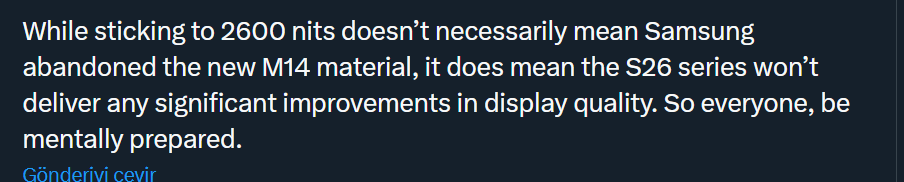 Hocam s25u da hala s23u(s23u hala çekmecede duruyor) da kullanılan panel var m13 ün yazılımsal editlenmiş hali m13+, 8 bit ekran, Pixel 9 pro xl kullanıyorum bunda da m14 samsung un paneli var cam gibi(iphone 16 seriside aynı materyali kullanıyor m14 panel), daha canlı , Samsung ekran da renkleri yıkanmış gibi,patlak veriyor, bunu da en rahat twitterda kırmızı font renkleri hakim bir sayfa aç ve karşılaştırın, pixel cihazda kırmızı olması gereken gibi, samsung da cırtlak kırmızı , ekran ayarlarını soğuk veya doğal yapınca da çok soluk , bunun sebebi de m13 paneldeki yazılımsal oynamaları, (vivo iqoo15 samsungun en yeni nesil paneli kullanıldı , samsung bunu s26 u da kesip biçip kullacak bu arada, sebebi de 5000 mah batarya koyduğu için , ekranın enerji tüketimini azaltmak, bu da ekran panel donanımdan kısmak demek, yan yana s26u ve iqoo15 koyunca iq15 daha kaliteli ekran izlenimi verecek ) https://www.gsmarena.com/vivo_iqoo_15_5g-14198.php panel mevzusunda , detaylı açıklama burada. < Resime gitmek için tıklayın > https://x.com/UniverseIce/status/1991417210686804188?s=20 Samsung kendi ultra serilerine bile tasarruf tedbirleri kapsamında kalitede ve donanımdan kısan bir firma, Bende bu politikasından hoşlanmadığım için bir daha Samsung cihazı satın almayacağım, resmen kendi kitlesine kısıtlanmış donanım satan bir şirket haline gelmiş, Yazılım stabilitesi ve akıcılığı zaten oturtamadı oneui 8.5 gibi saçma sapan ara isimlendirmelere gittiler, hala en basitinden çinli rakiplerinin gerisinde akıcılık konusunda, Pixel e zaten yaklaşamaz, s23u ve samsung watch 7 kullandım, bildirimler saate geç düşüyordu, ne zaman pixel 9 pro xl geçtim aynı saatte bildirimler su gibi akıyordu, Samsung hala kendi eko sistemini oturtamamış, şu anda pixe 9 pro ile oneplus watch 3 kullanıyorum , tıkır tıkır çalışıyor, Dersen ki arayüzü istediğim gibi özelleştirme yaparım, multitasking , dex modu , çok kullanıyorum , emilatör oyunlarının bağımlısıyım , kamera video benim için 2.3. planda çokta önemli değil diyene evet s25u güzel kompakt cihaz. |