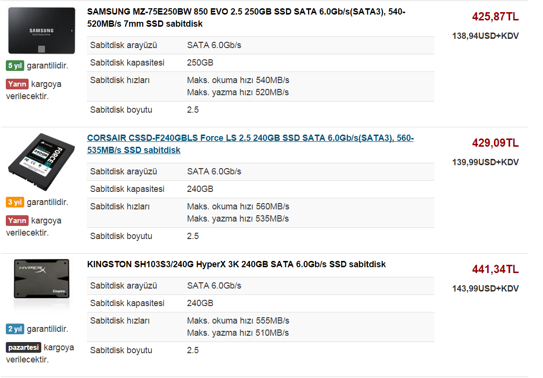 Aşağıdaki SSD'lerden hangisi alınmalı. ? Nand ve kontrolcü olarak hangisi daha kalitelidir. ? Seçimi teknik detaylara göre yapmak istiyorum.