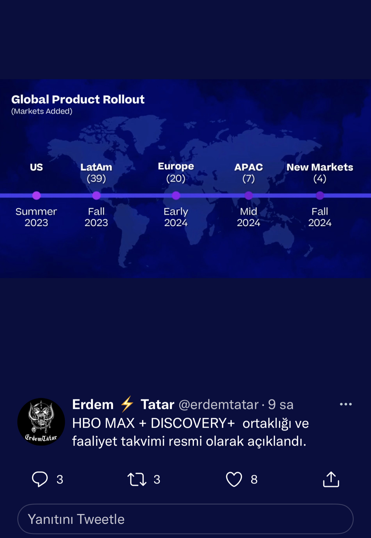 | Türkiye'ye özel bir durum yok hocam. HBOMax'in genişleme süreci durdu. HBOMax ve Discovery+ birleşmesi ile birlikte sil baştan başlayacaklar. Türkiye'ye yine geleceklerini düşünüyorum ama uzun bir vakit var. Başa döndük. Bundan sonra beklemem ben. |