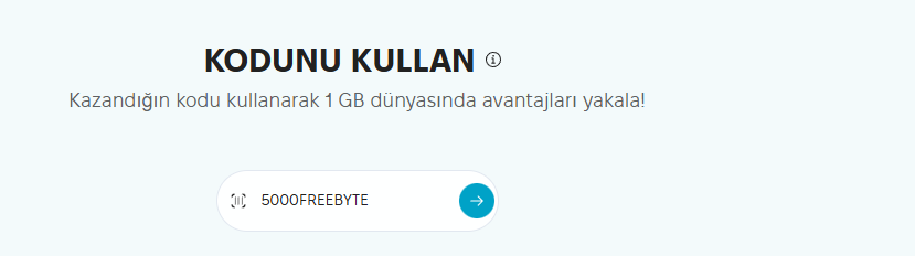 Ardından 5000FREEBYTE kodunu gönderin veya siteden aktif edin. toplam da 6000=6GB