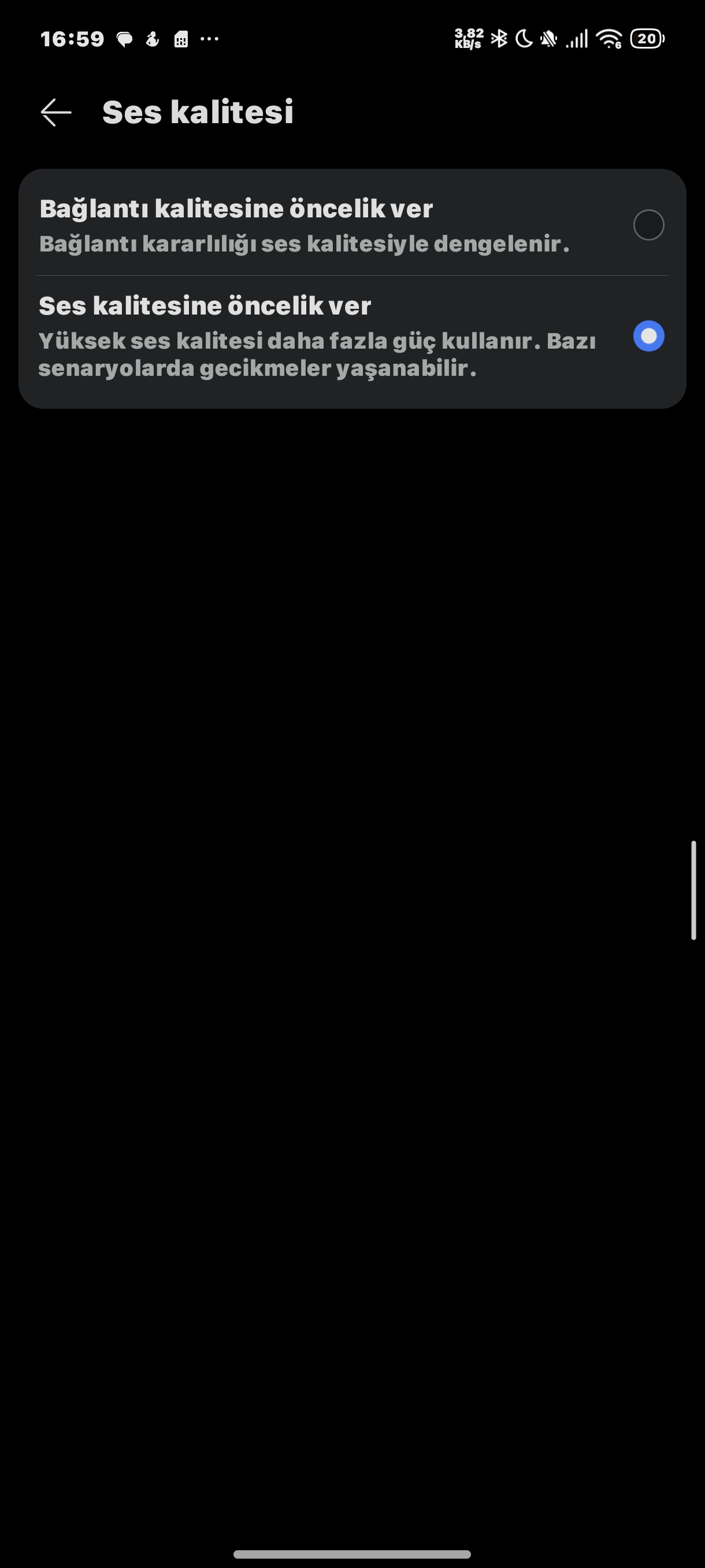 Önceliklendirme şöyle işliyor : Gelen / Giden Çağrı ( normal ses araması , whatsapp araması farketmiyor ) > Video / Ses Kaydı > TV veya harici kaynaktan gelen sesler.