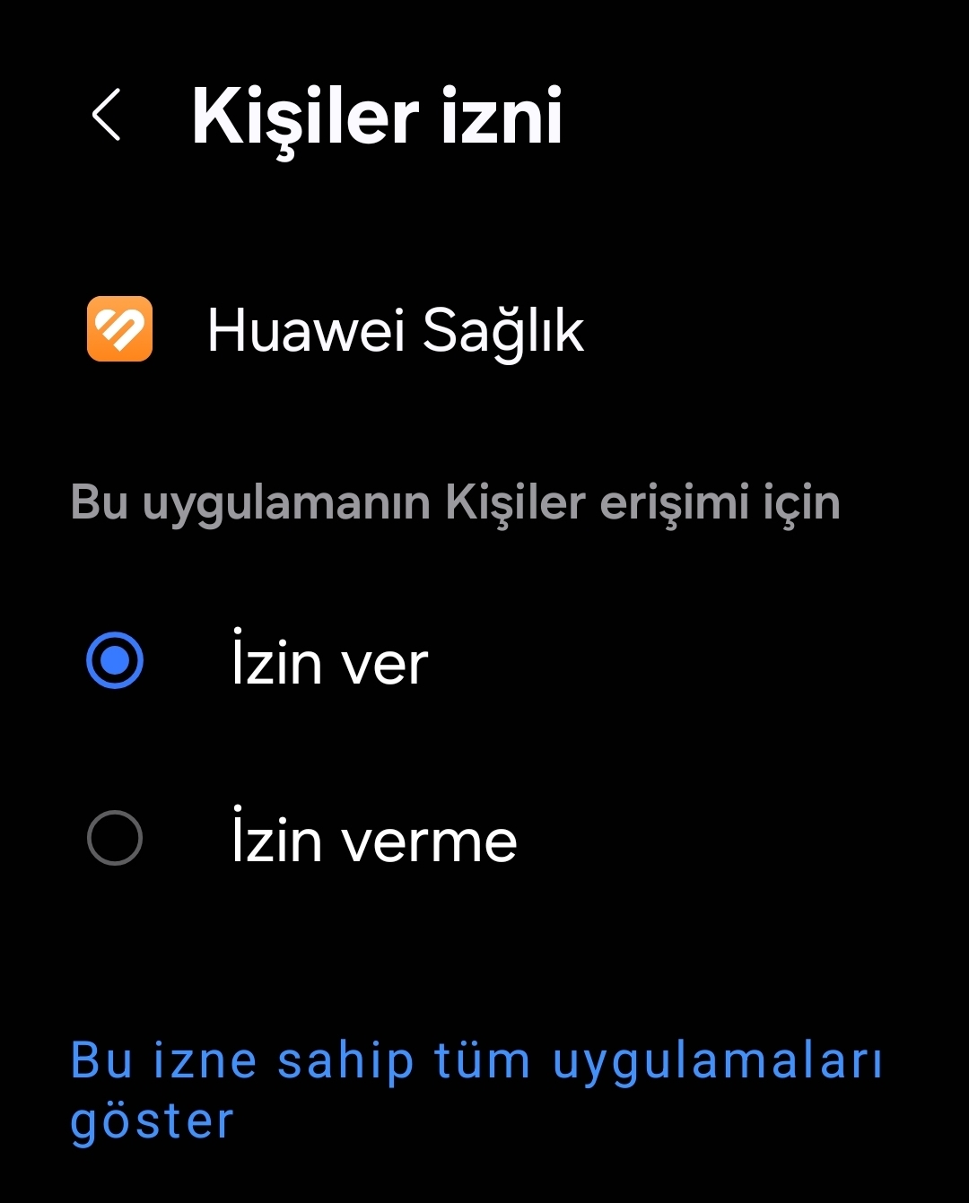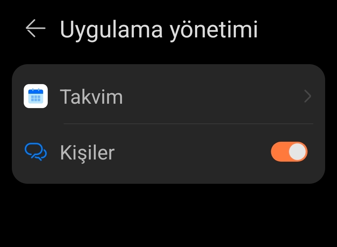 Aynen hocam yazdıktan sonra o kısmı çözdüm. Uygulama izinlerinden kişiler izni vermiştim alttaki gibi görünüyordu ama uygulama yönetimi açık olmadığı için saatte görünmüyormuş. Sağolun |