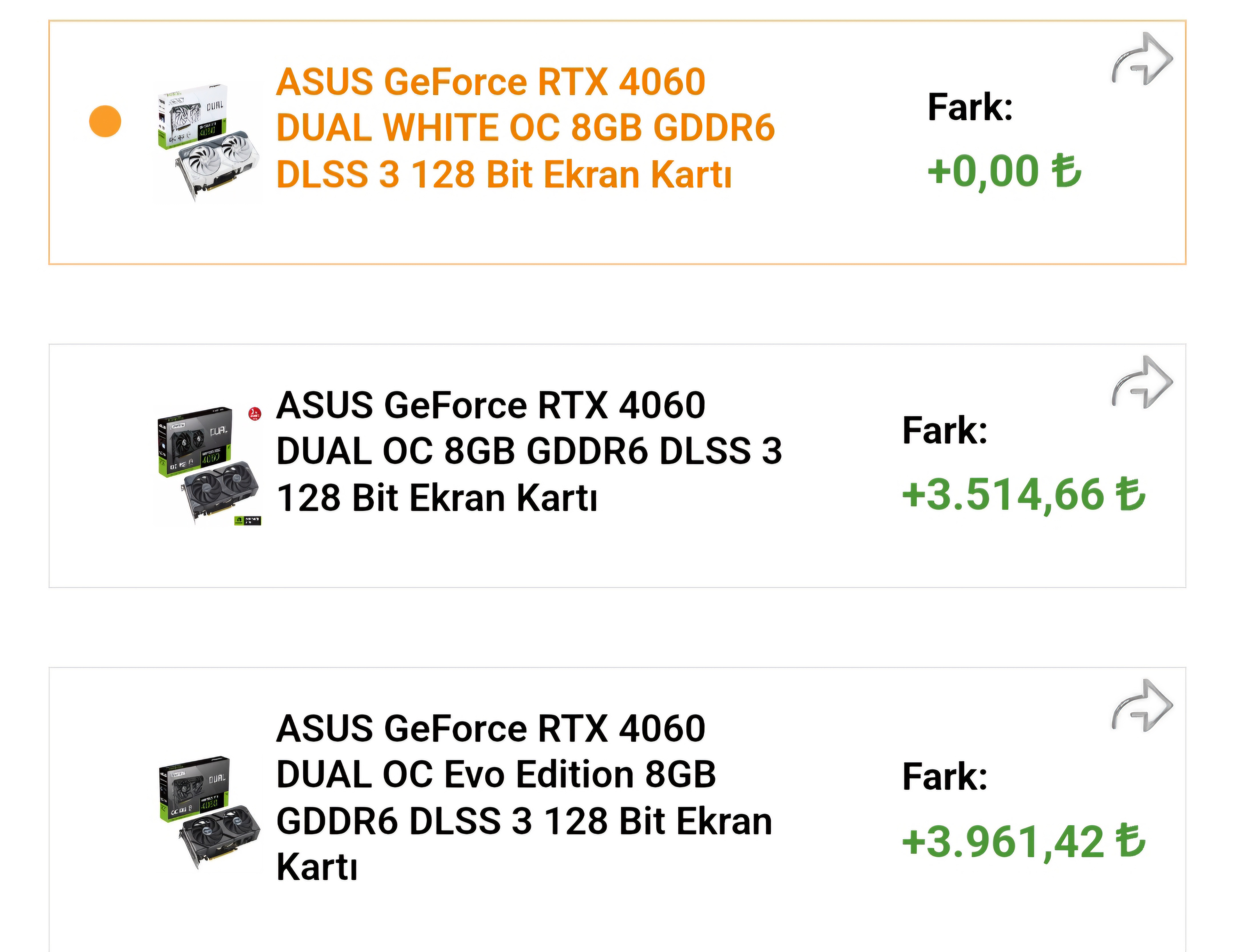 İkisi de Asus biri siyah biri beyaz. Soğutmasından mi kaynaklı bu fark her üründe bu tarz yazilardan baktığımda anlamadığım fakat görünen bir fiyat farki var. Dikkat etmem gereken hususu belirtirseniz çok makbule geçer.