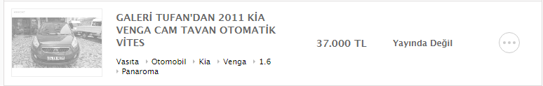 İkinci elde durgunluk var bu aralar. İlan koyuyorsun galericiler arıyor sadece oluk olmadık fiyatlar söylüyor sinirin bozuluyor. İki günde bir adam akıllı soran eden oluyor. |