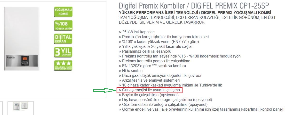 Airfel kombilerde Güneş Enerjisi ile uyumlu çalışma ibaresi var bence sorunu çözmüşler. < Resime gitmek için tıklayın > |