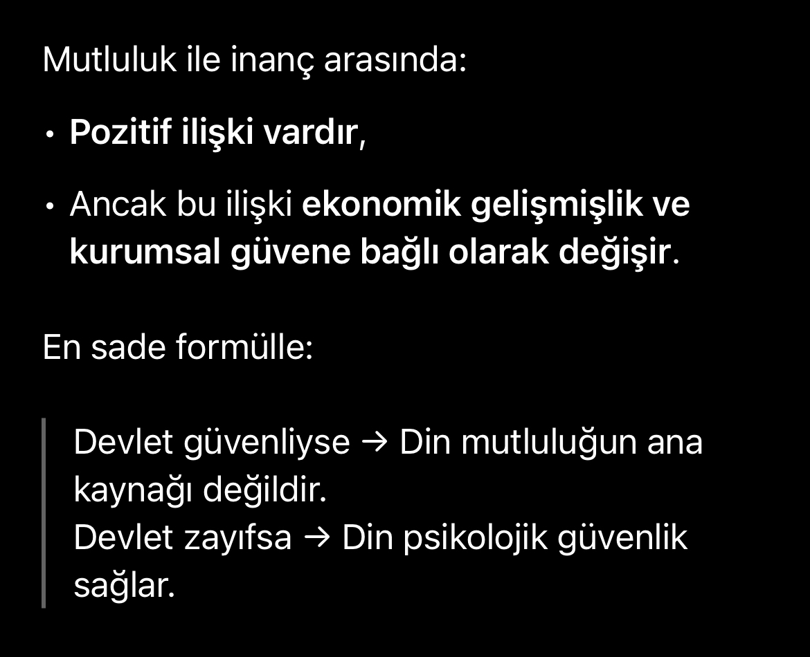 | İnançsızın bu dünyada mutlu olması imkansızdır. Öyle olsa idi, zengin ateistlerin yaşadığı iskandinav ülkelerindeki intihar oranları sıfıra yakın olurdu. Her insanda bir yaratıcıya inanmak ve bağlanmak hissi mevcuttur. Yaratıcıyı tanımayan o kalp asla boş kalamaz, anında orayı başka birşey doldurur. ya kadın, ya para, ya nefs, ya da başka bir din. İnançsızların elde edeceği mutluluk saman alevi gibi olup sahtedir, gerçeğinin yerini tutamaz |
