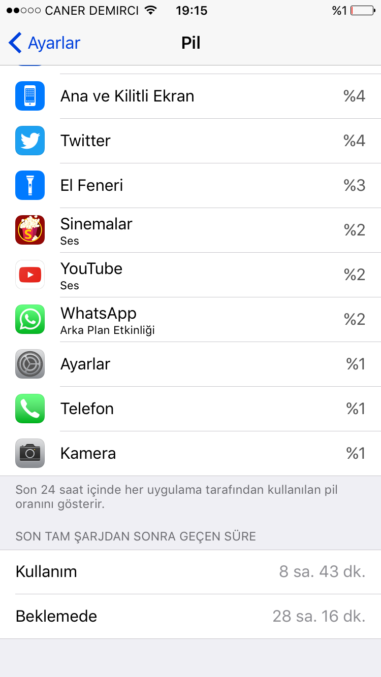 | Güncellemeden önce rahatlıkla sekiz buçuk saat alırken şimdi yüzde 10 kalınca beş buçuk saati zor görüyor. Gerçekten hiç hoşlanmadım bu durumdan. |