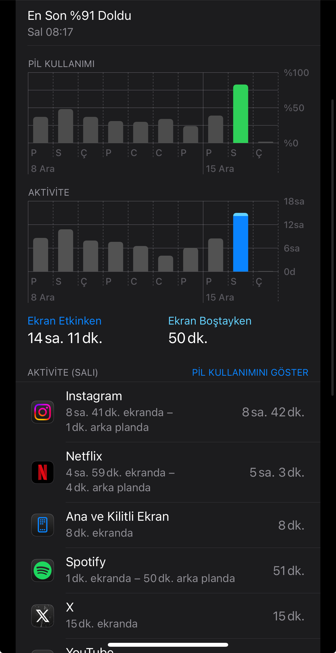 XR da pil süresinde artış var diğer cihazlara yüklenemediği için bilinmiyor < Resime gitmek için tıklayın > |