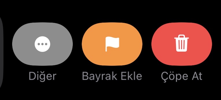 Mail uygulamasında maili kaydırınca en sağdaki sarı sil butonu ile kırmızı çöpe at arasındaki fark neydi?