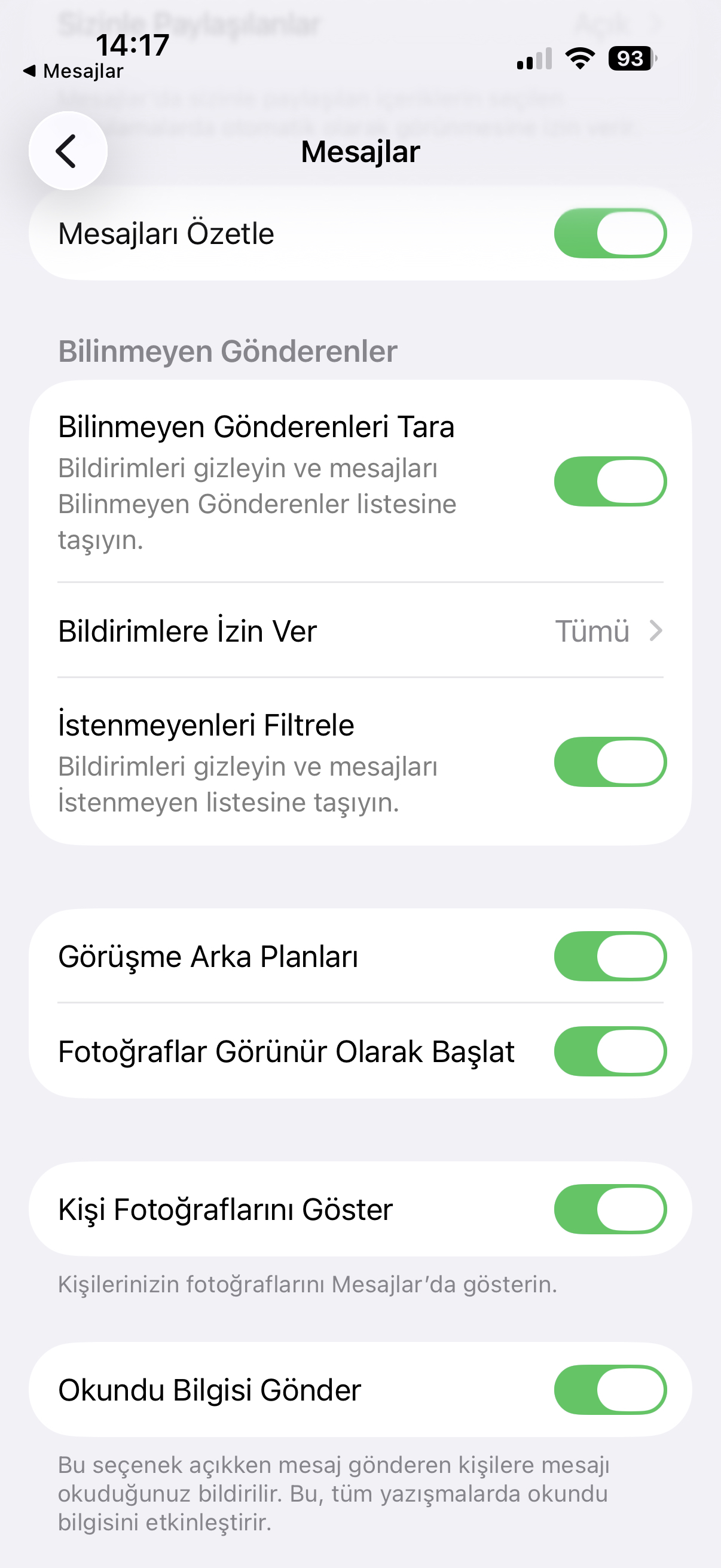 | Bende sadece Mesajlar, İstenmeyen ve Son Silinenler var. iOS 26.0.1 kullanıyorum. Siz 26.1 betasında mısınız? |