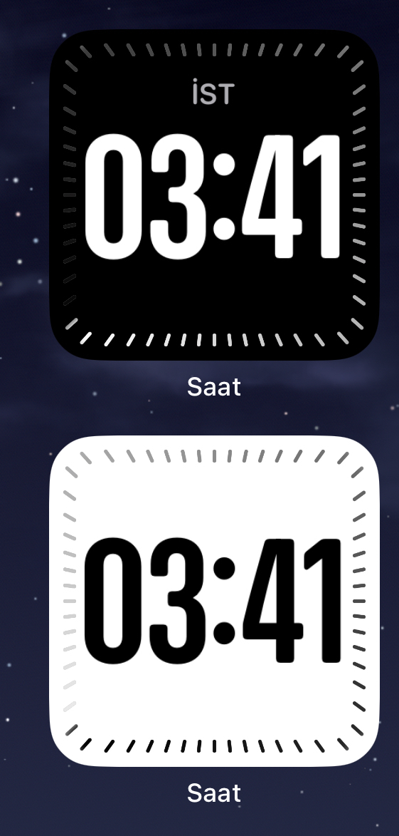 “Şehir Dijital” saati seçin, daha sonra üzerine basılı tutun düzenleye basın istanbulu seçin. Akşam ve gece kararıyor. Koyu moddan bağımsız ;) < Resime gitmek için tıklayın > |