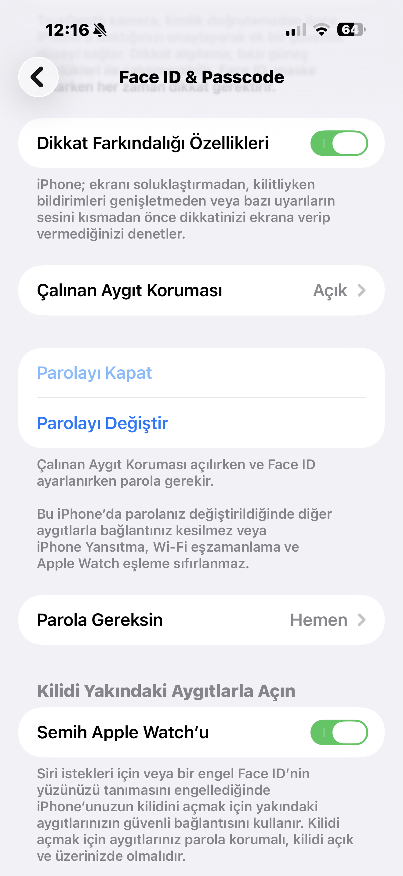 Ayarlar - Face id & Parola kısmında DİKKAT FARKINDALIGI ÖZELLİKLERİNİ kapatın sesin kısılmasını istemiyorsanız.