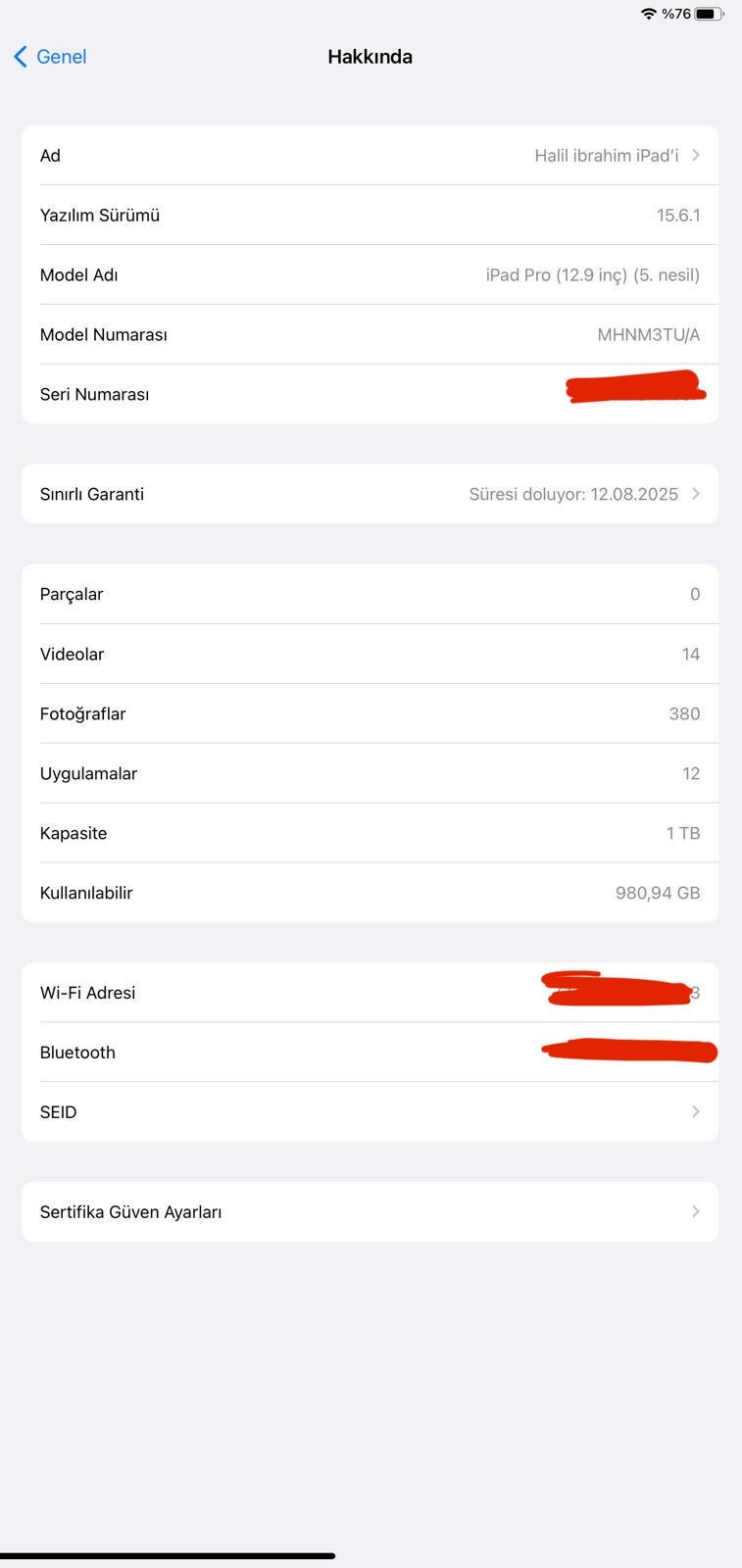 Garanti için fatura gerekiyor hocam düzeltme yap istersen Apple konuştum