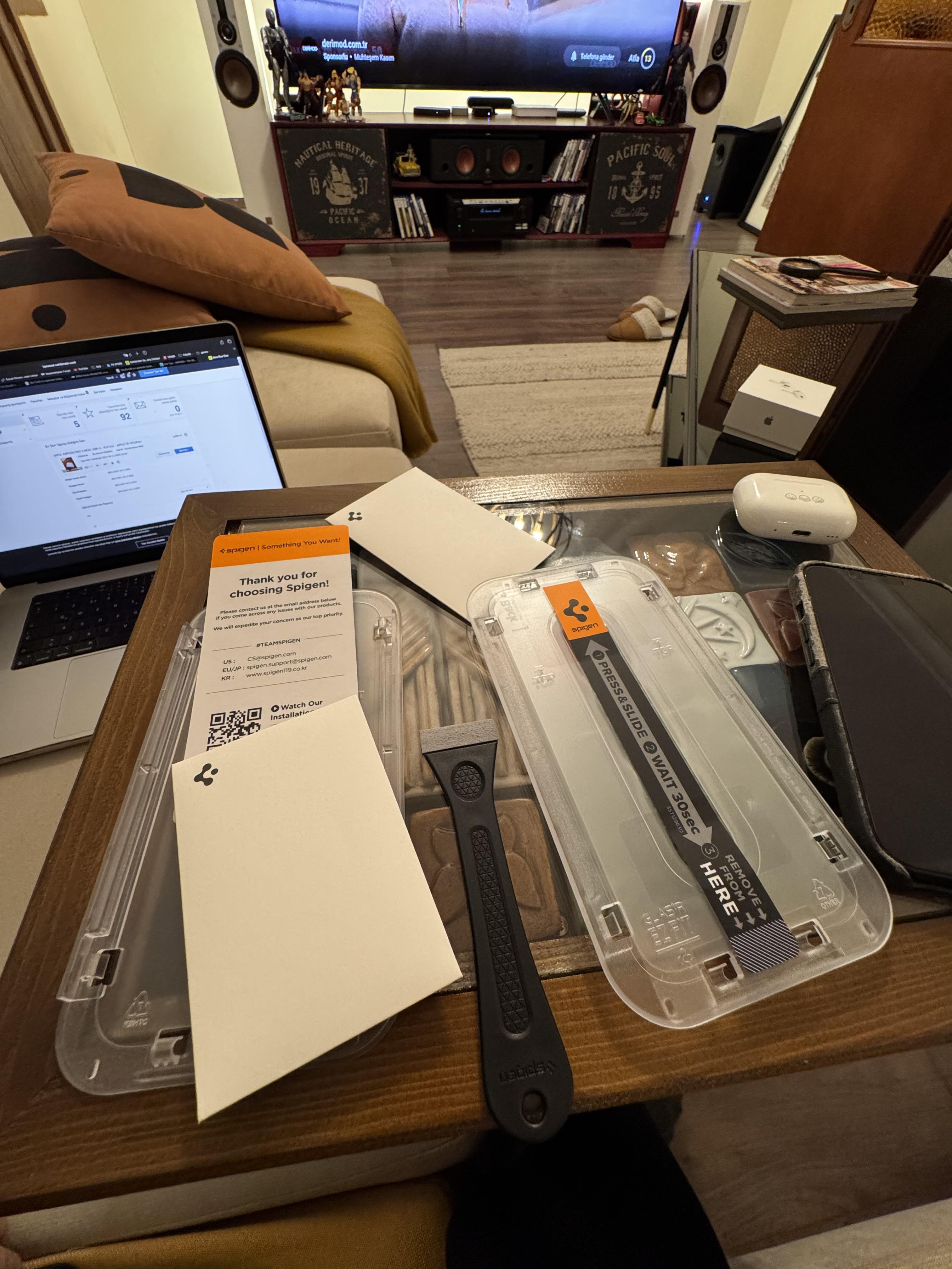 Telefon ile birlikte , Spigen'in sıfır GlastR Ez FIT ekran koruyucusunu ve Spigen'in kılıfını hediye olarak vereceğim.