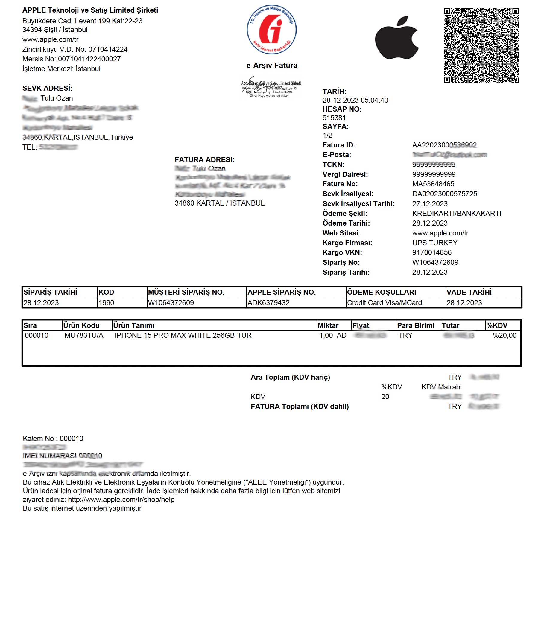 1IPHONE 15 PRO MAX APPLE STORE TR GARANTİLİ KUTULU